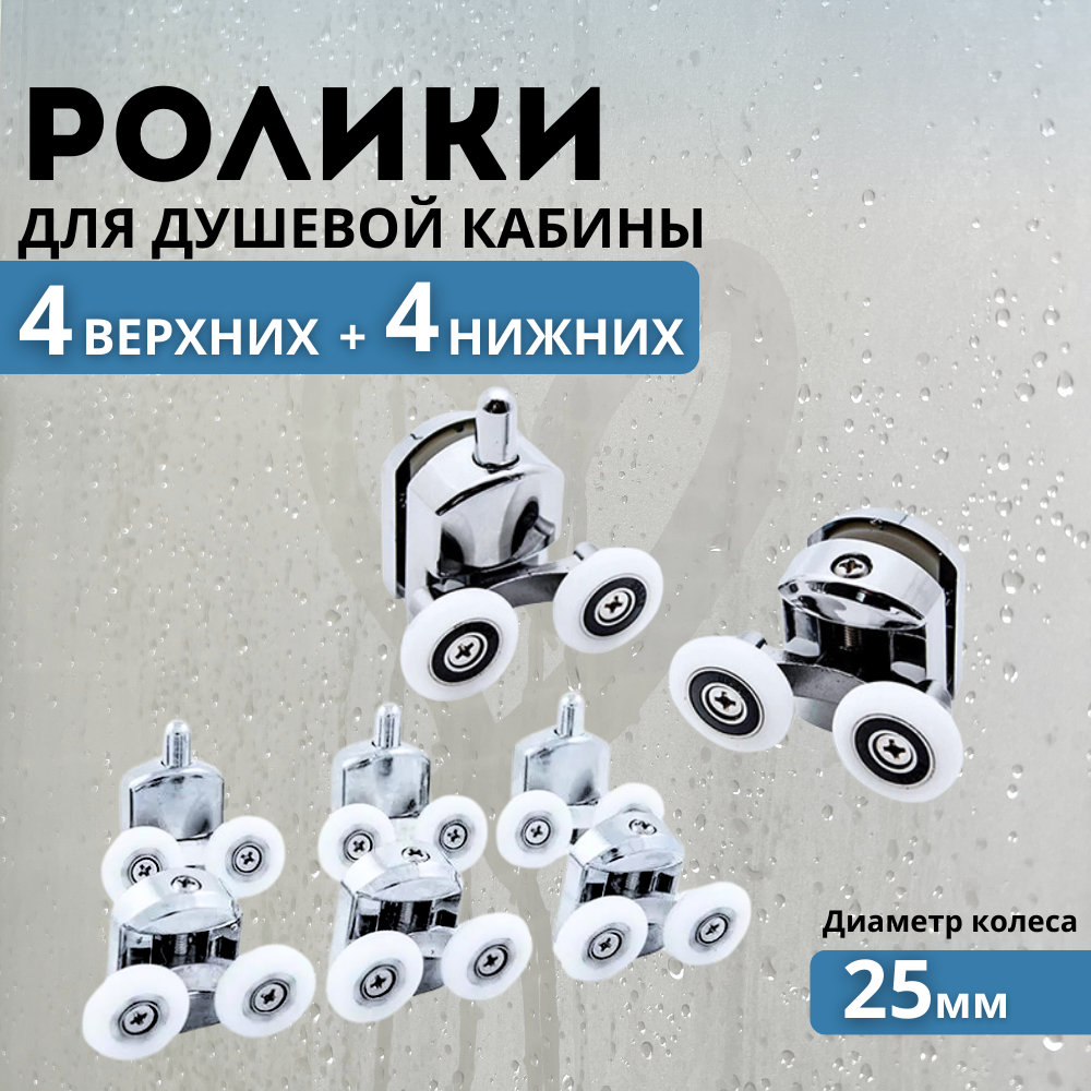 Ролики для душевой кабины 25 мм 8 шт двойные /колесики для дверей информация: