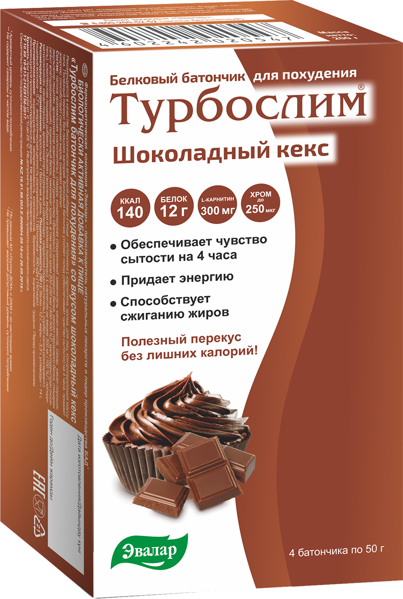 Турбослим батончик для похудения со вкусом шоколадный кекс, 4 шт, Эвалар информация:
