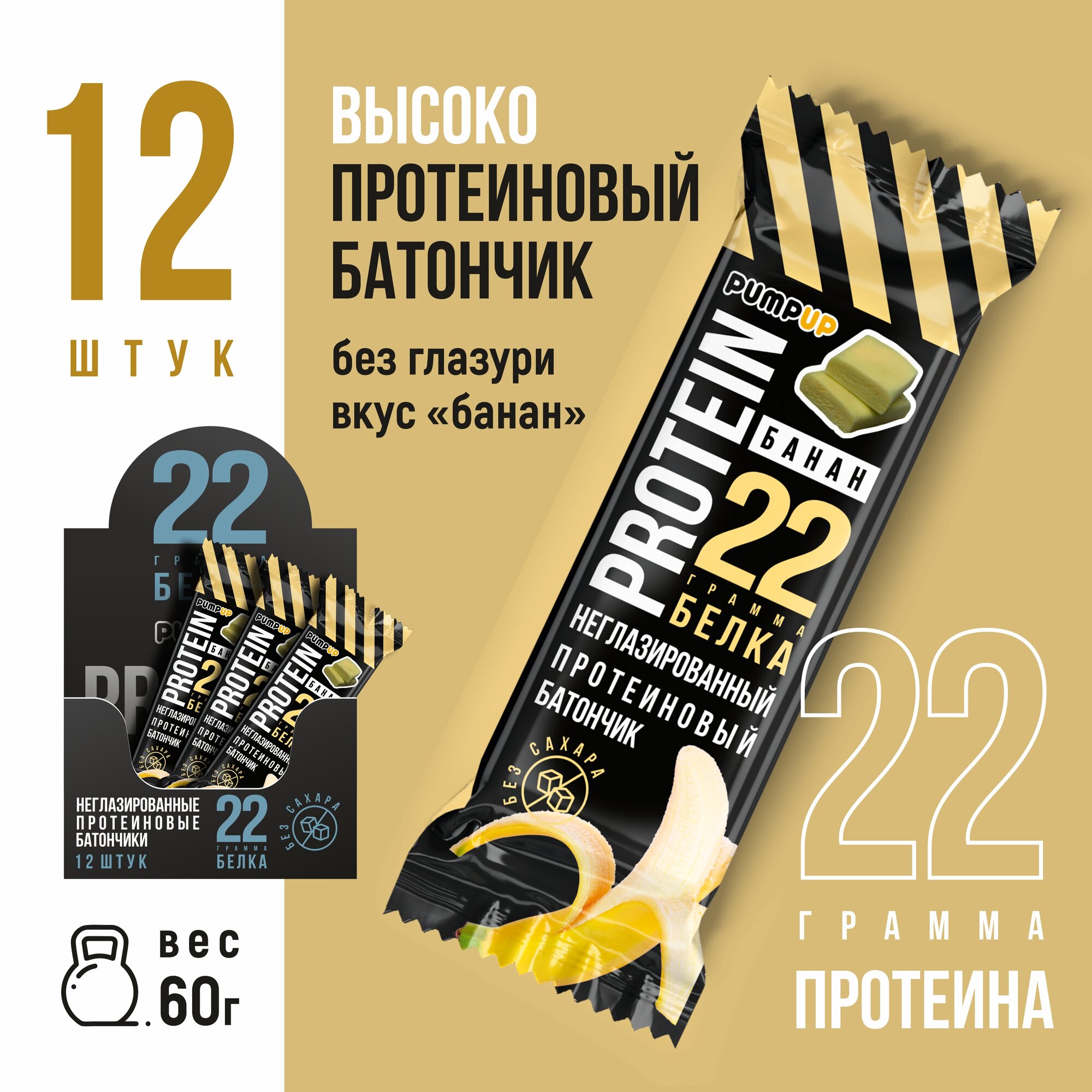 10 цен на Набор протеиновых батончиков без сахара Pump Up с бананом 12 шт. по 60 гр.
