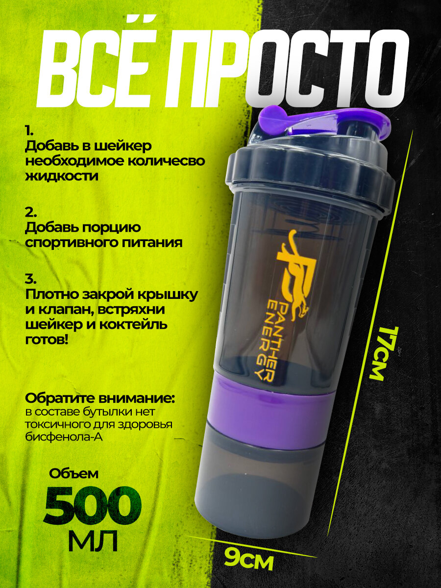 10 цен на PANTHER ENERGY Шейкер спортивный, 500 мл черный