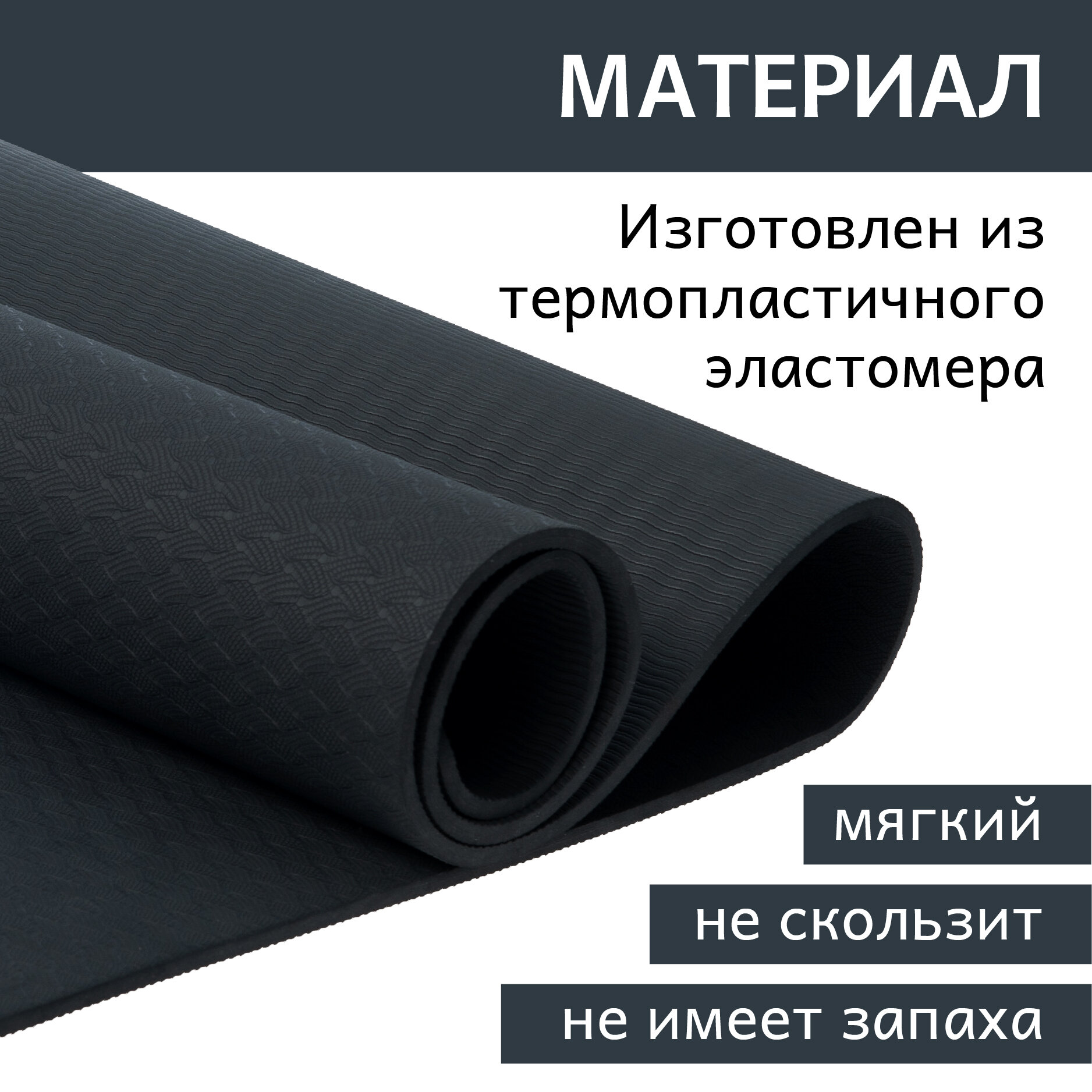 Коврик для фитнеса и йоги ATLAS TPE 8мм, 183х61 см черный, спортивный нескользящий коврик для тренировки, пилатеса и гимнастики информация: