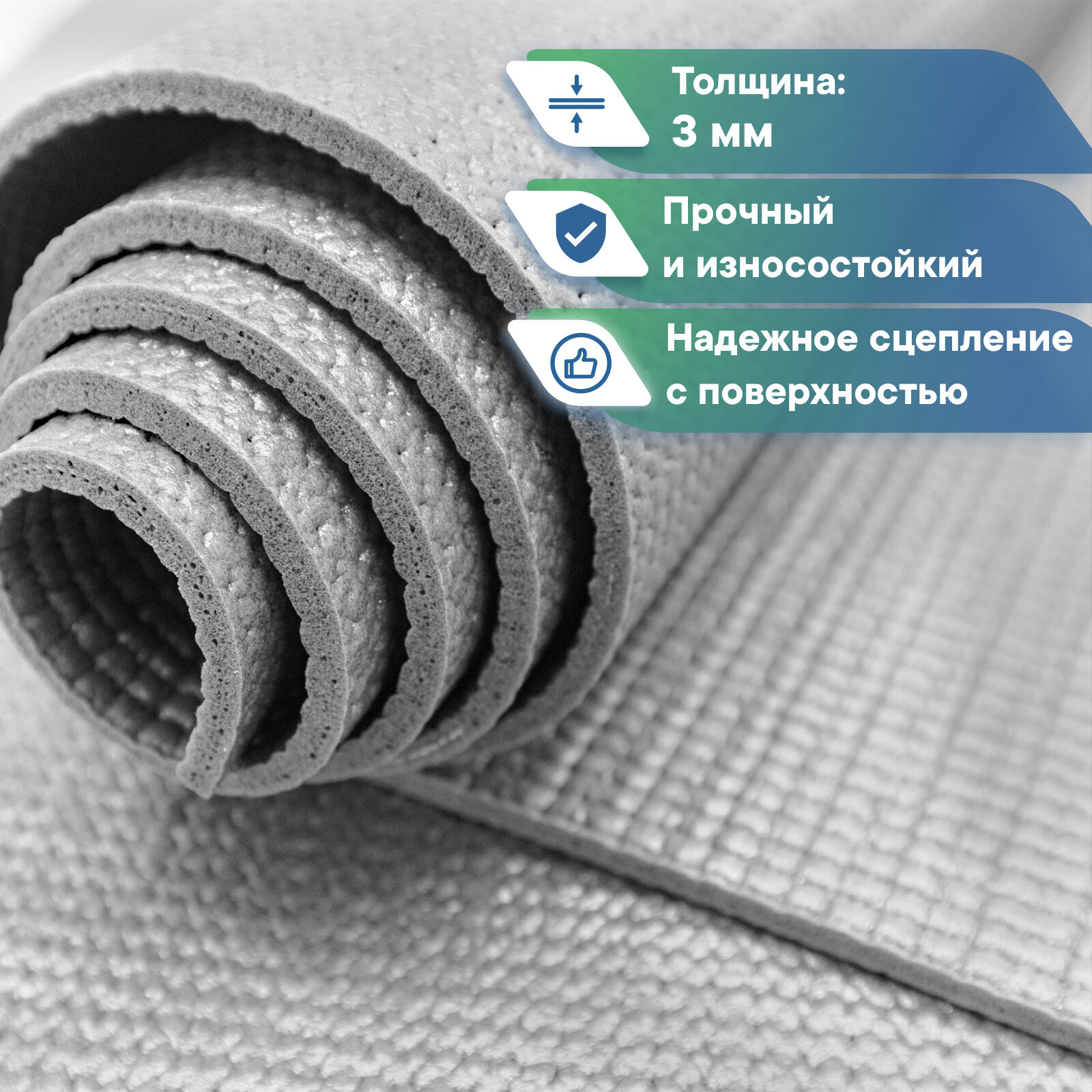 Коврик VILINA спортивный для йоги и фитнеса, растяжки, гимнастики 0,3 см 61х183 см серый информация: