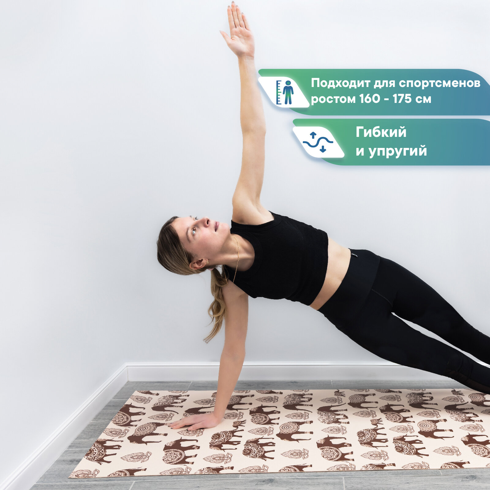 Коврик VILINA спортивный для йоги и фитнеса, растяжки, гимнастики 0,3 см 61х183 см бежевый слон информация: