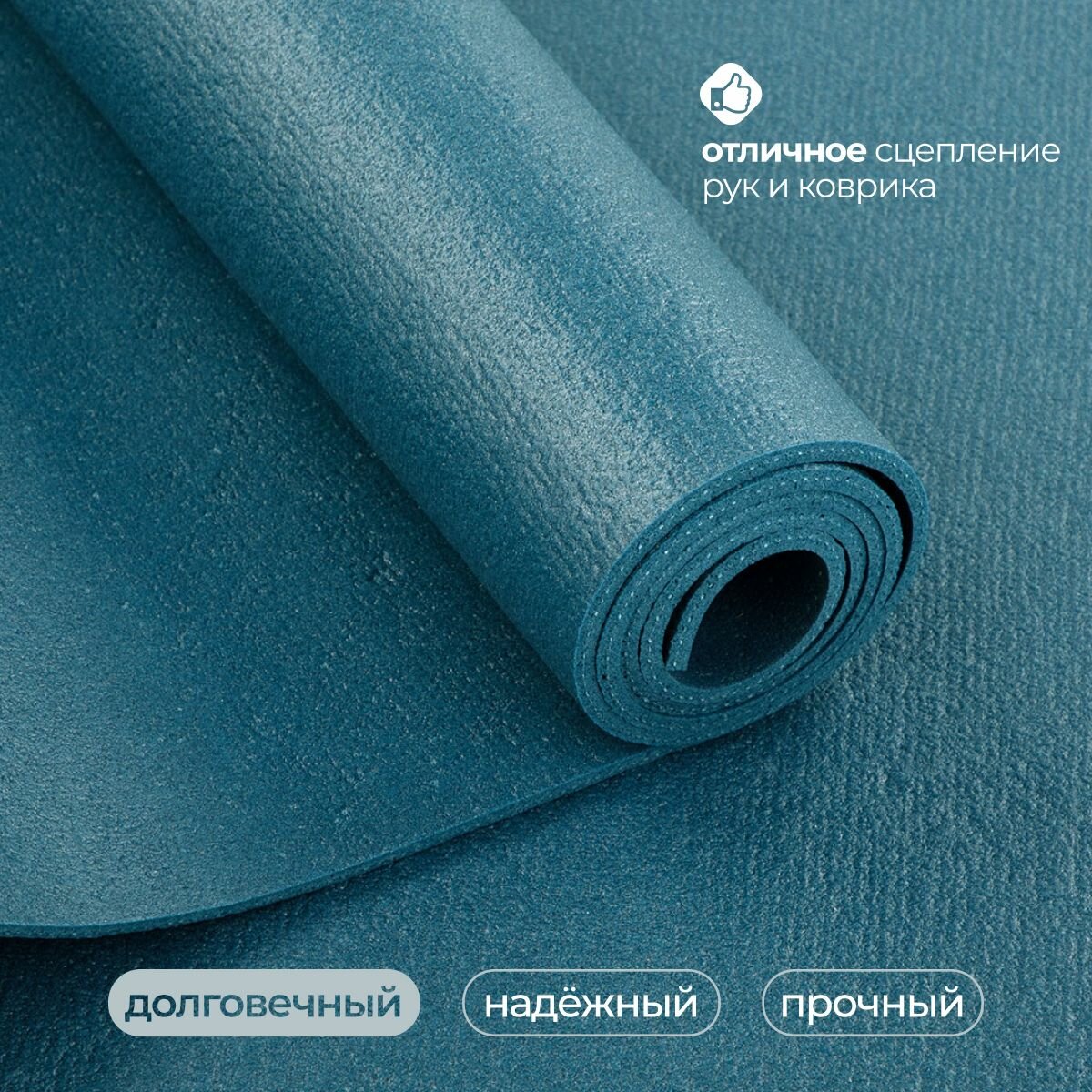 Коврик для йоги Yogastuff Ришикеш голубой 175*60 см, прочный, нескользящий 3 990 ₽
