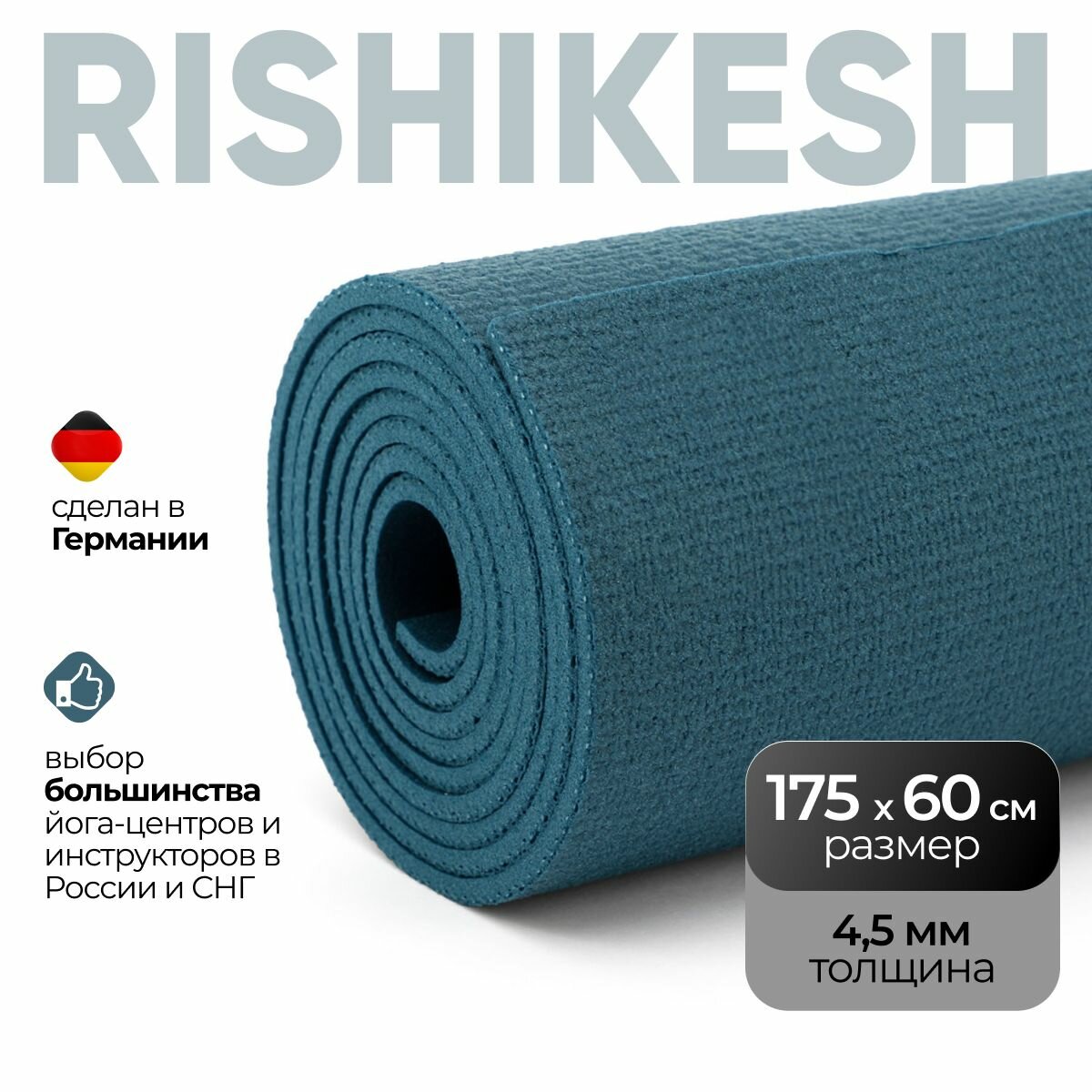 Коврик для йоги Yogastuff Ришикеш синий 175*60 см, прочный, нескользящий информация: