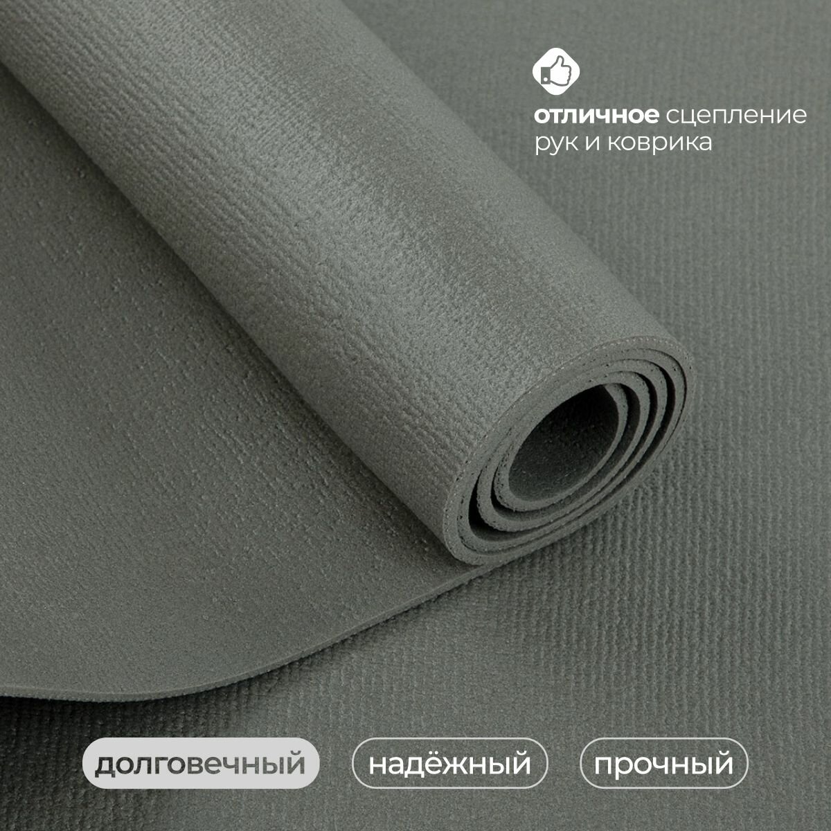 Коврик для йоги Yogastuff Ришикеш серый 200*60 см, прочный, нескользящий информация: