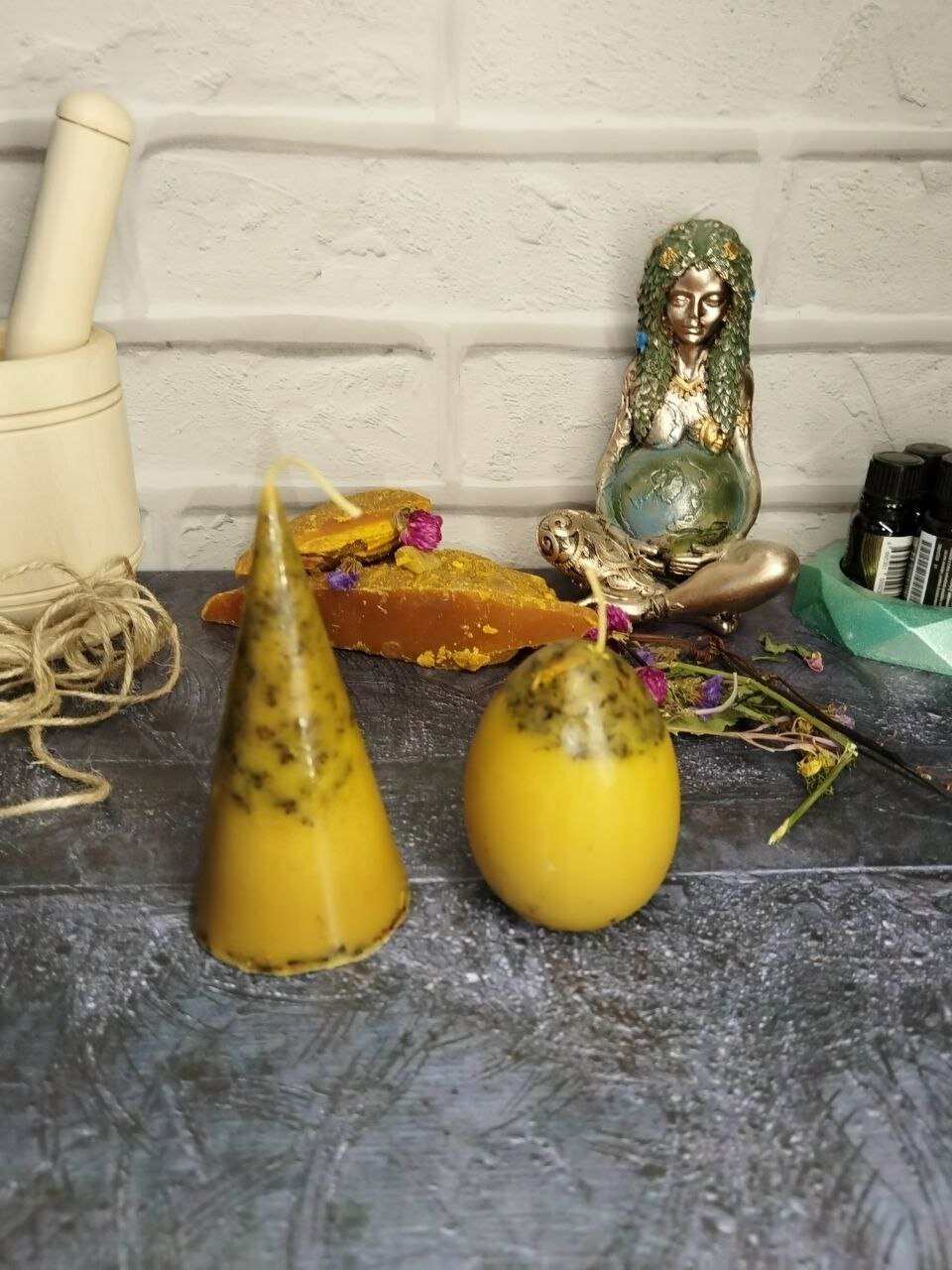 10 цен на Набор программных свечей "Исполнение желания" пчелиный воск с травами (яйцо "чистка" + ведьмина свеча "создание намерения")