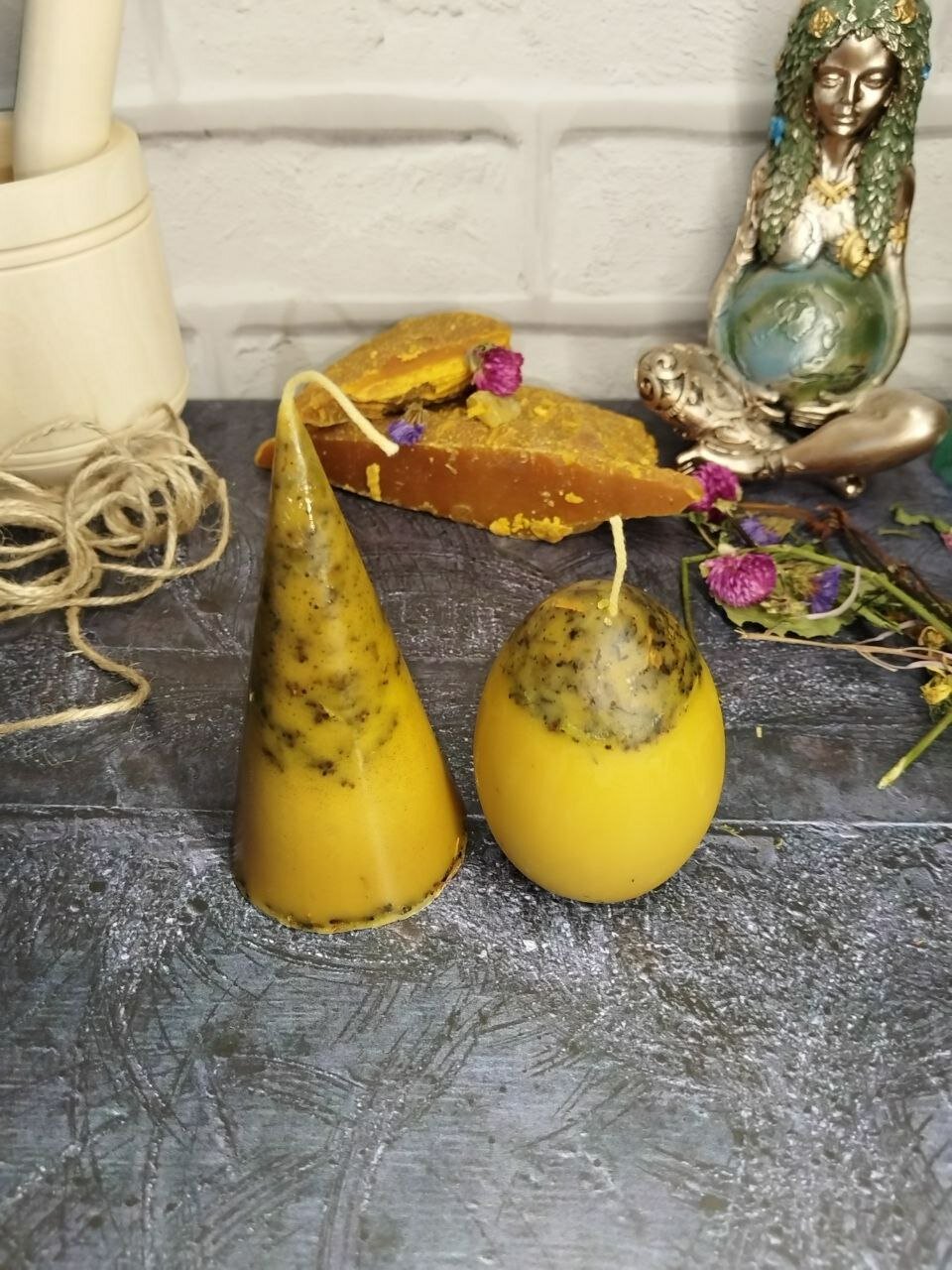 Набор программных свечей "Исполнение желания" пчелиный воск с травами (яйцо "чистка" + ведьмина свеча "создание намерения") информация: