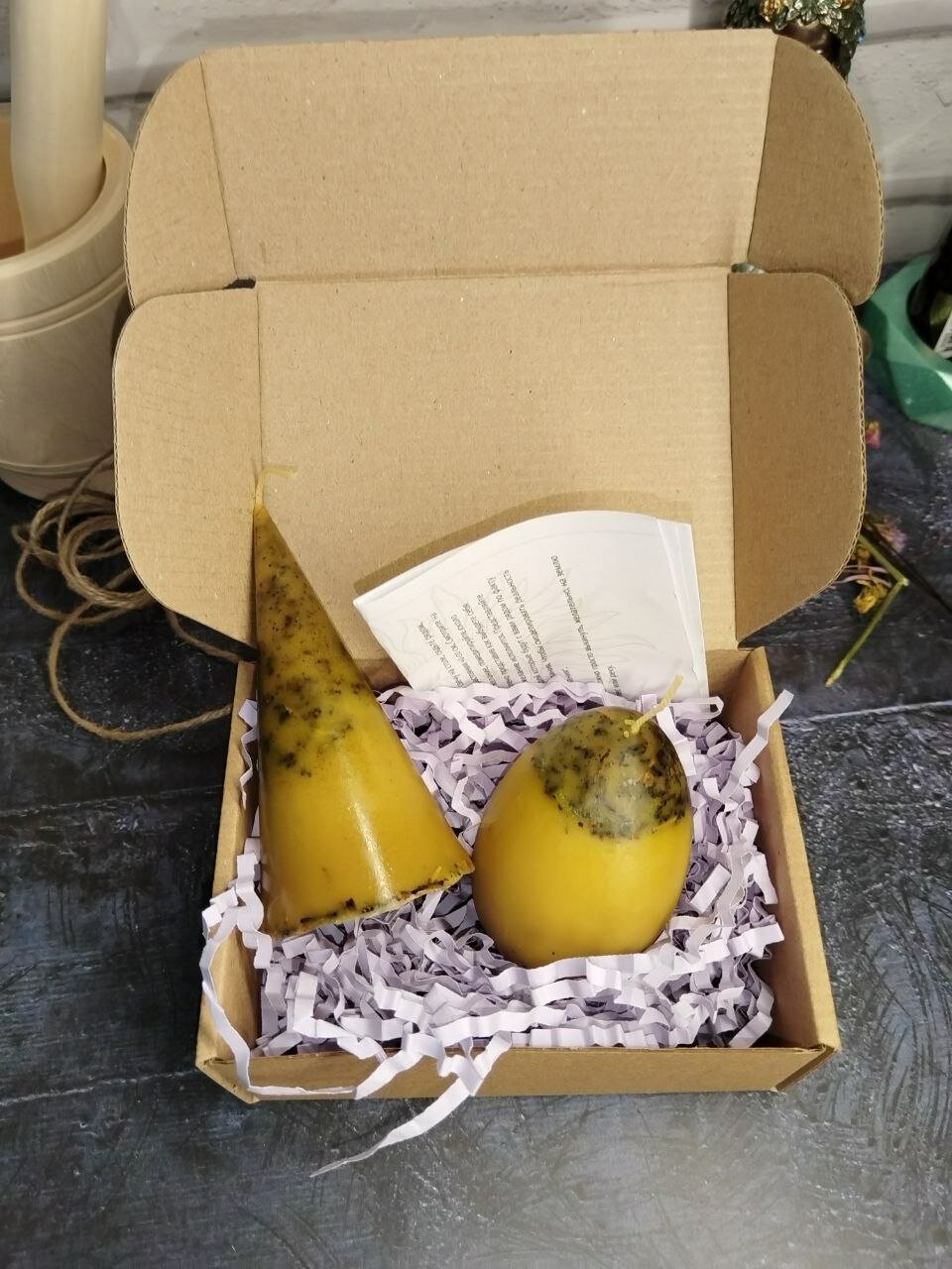 Отзывы на Набор программных свечей "Исполнение желания" пчелиный воск с травами (яйцо "чистка" + ведьмина свеча "создание намерения")