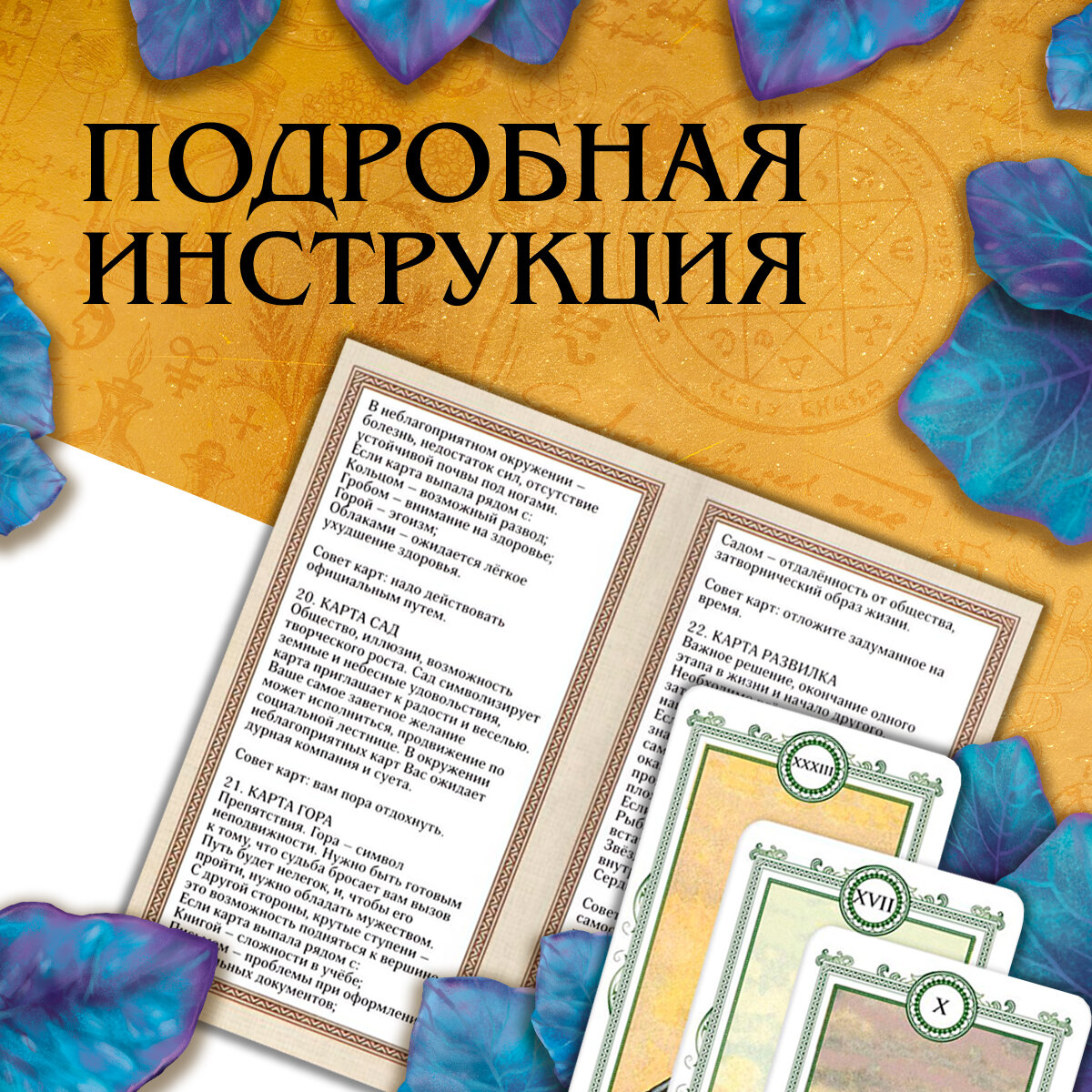 | Подробная комплектация | 36 карт, мешочек для хранения, инструкцию с толкованием |