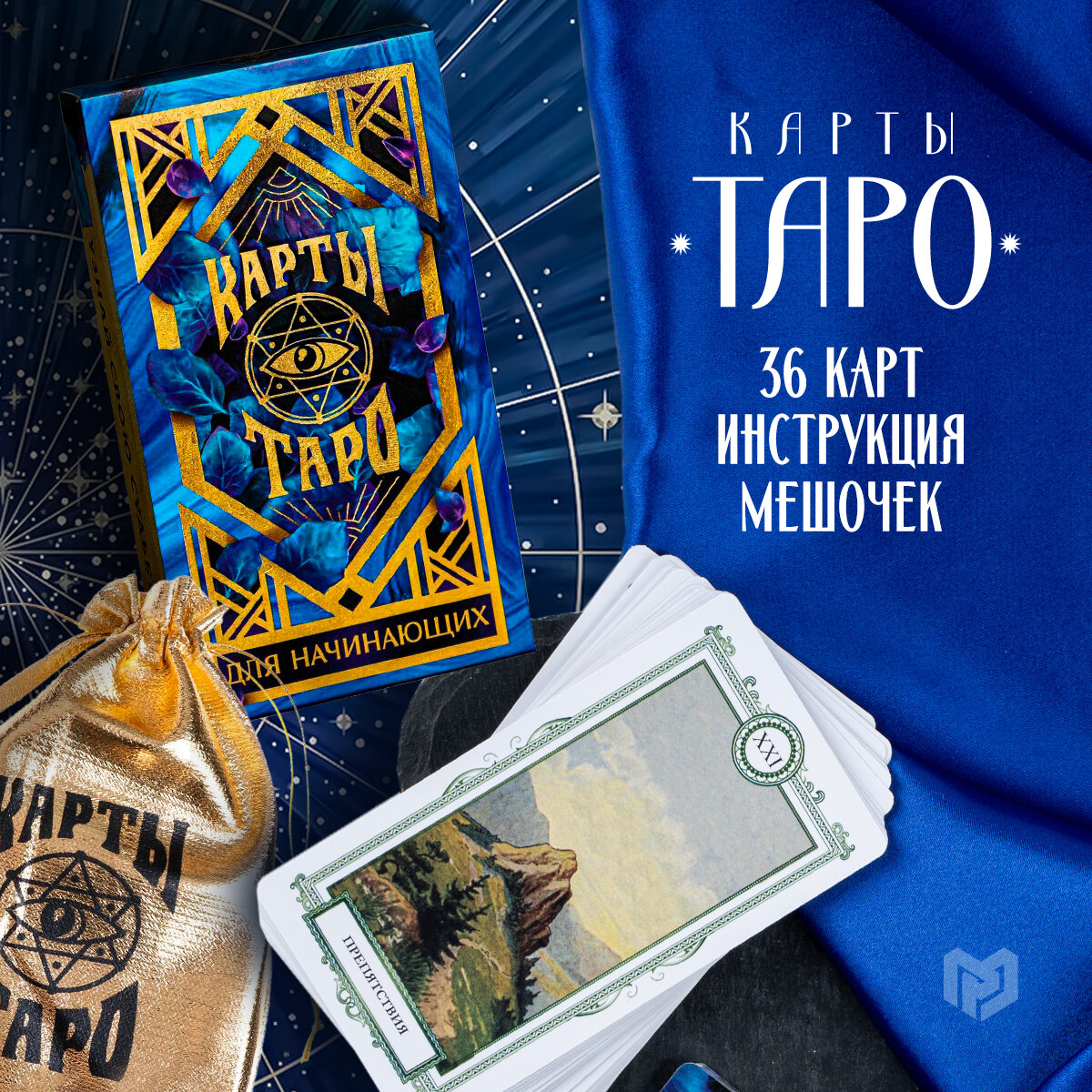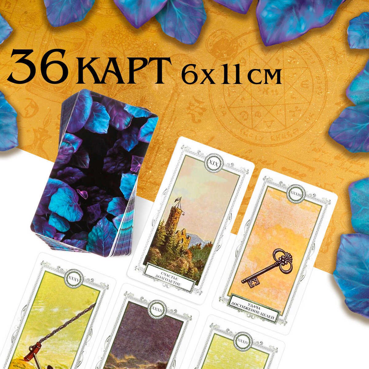 Таро Оракул «Для начинающих», 36 карт, золотой мешочек 6 х 11 см, 16+ информация: