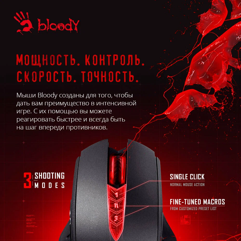 Игровая мышь A4Tech Bloody V8, проводная USB, с подсветкой, 3200 cpi, черный информация: