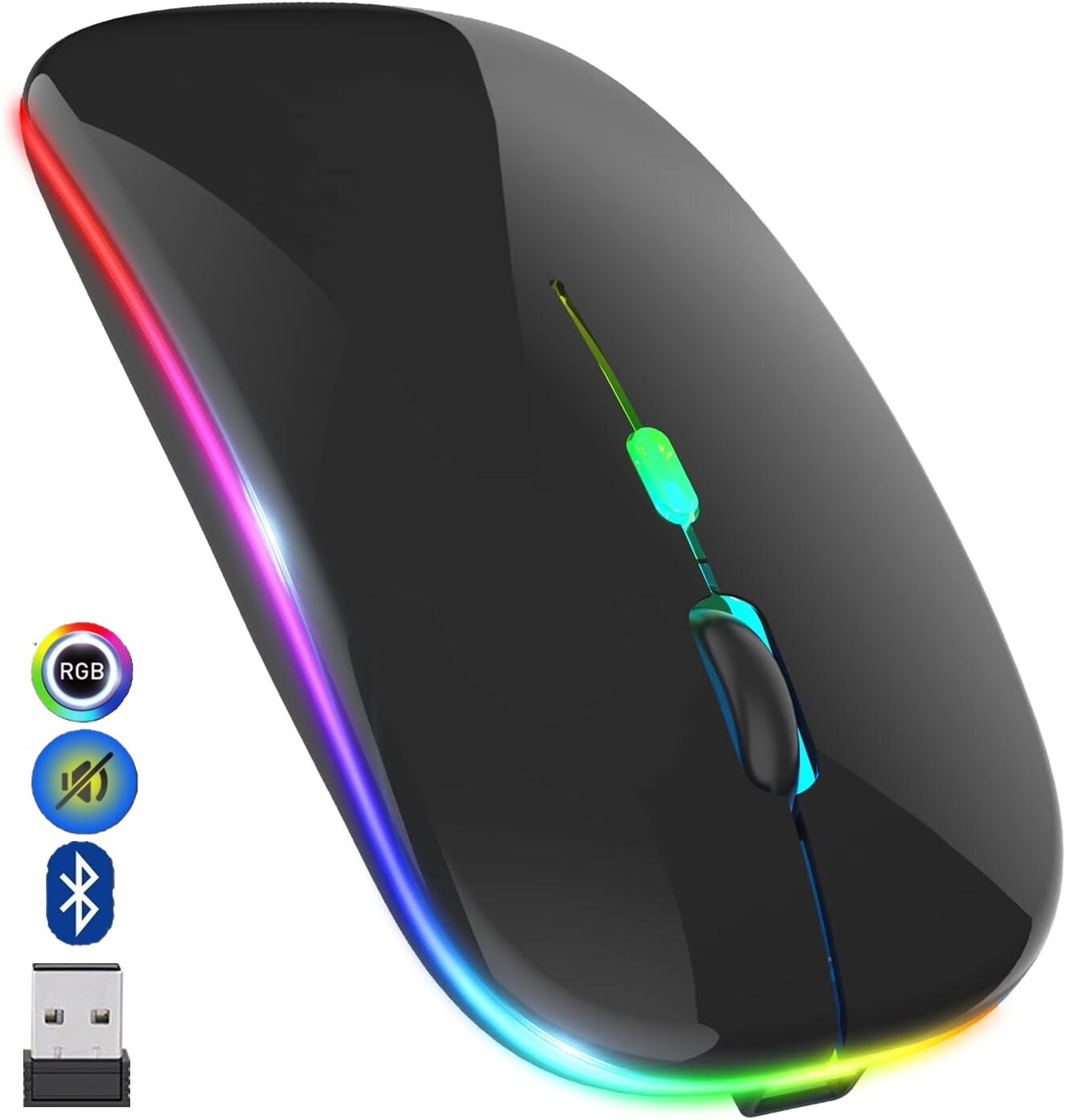 Беспроводная компьютерная мышь со встроенным аккумулятором и подсветкой RGB, Bluetooth, WiFi 2.4 гц, 3 регулируемых уровня DPI, черный информация:
