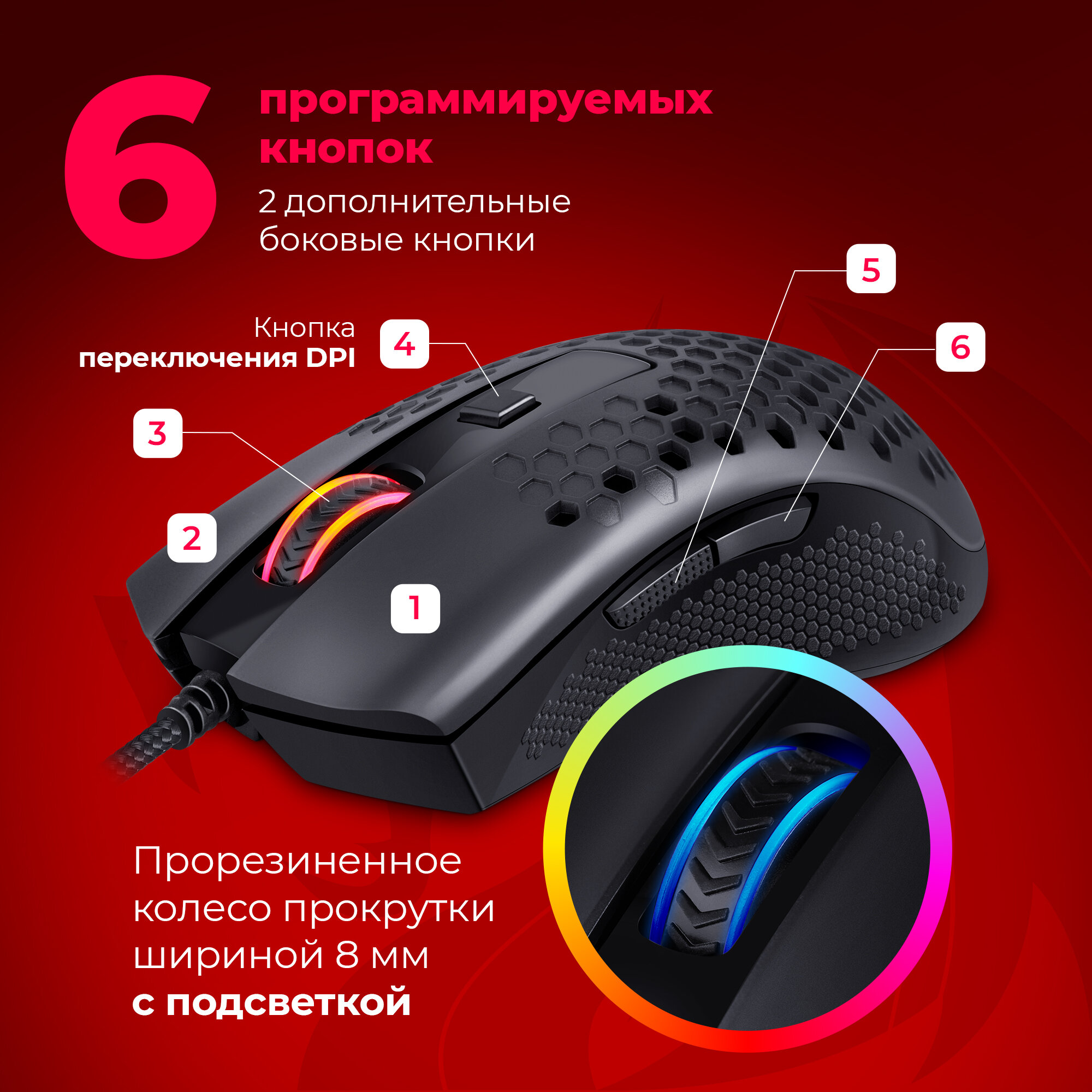 10 цен на Проводная игровая мышь Redragon Storm Basic 12400 DPI, черная, легкая