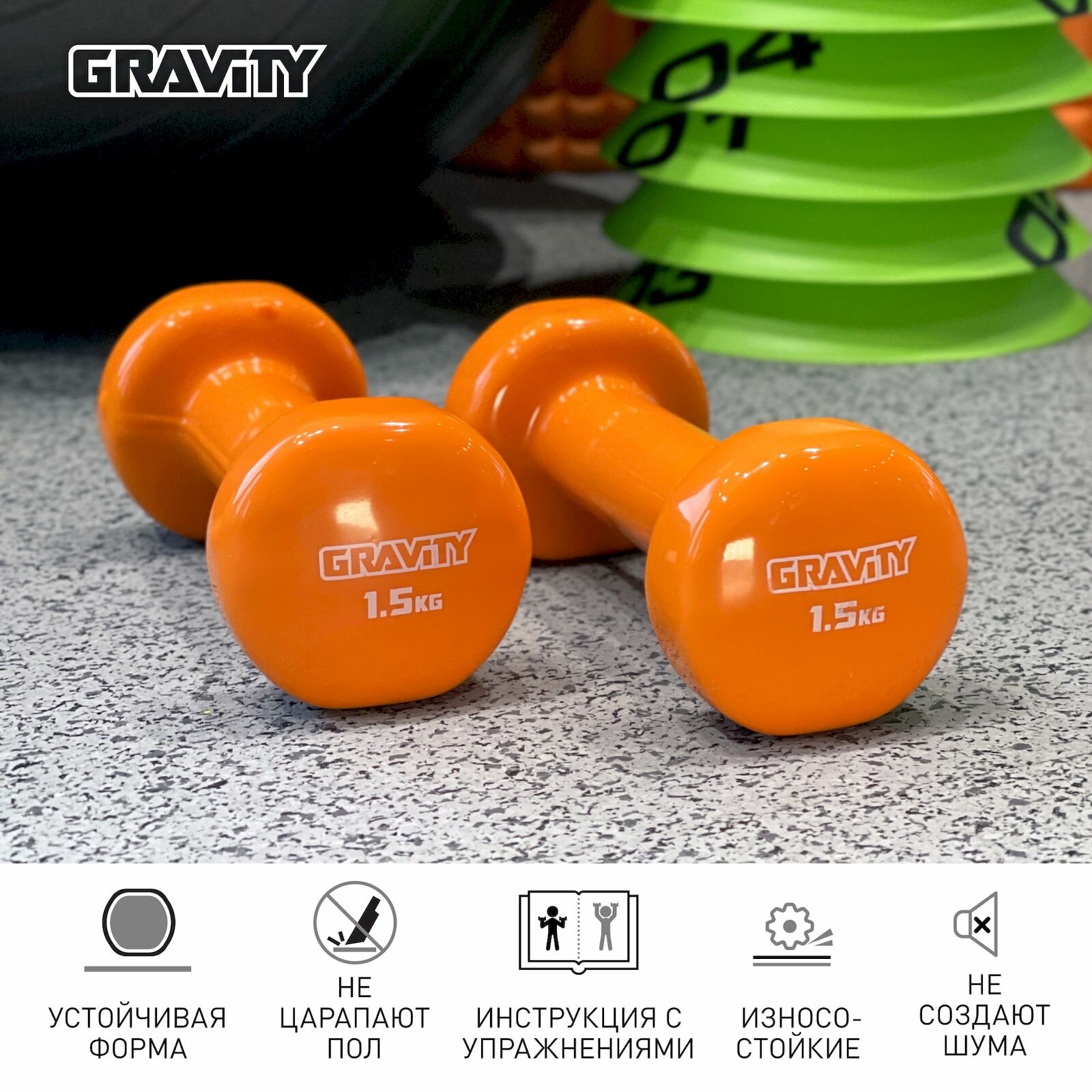 Гантели с виниловым покрытием Gravity, оранжевые, 1.5 кг, пара информация: