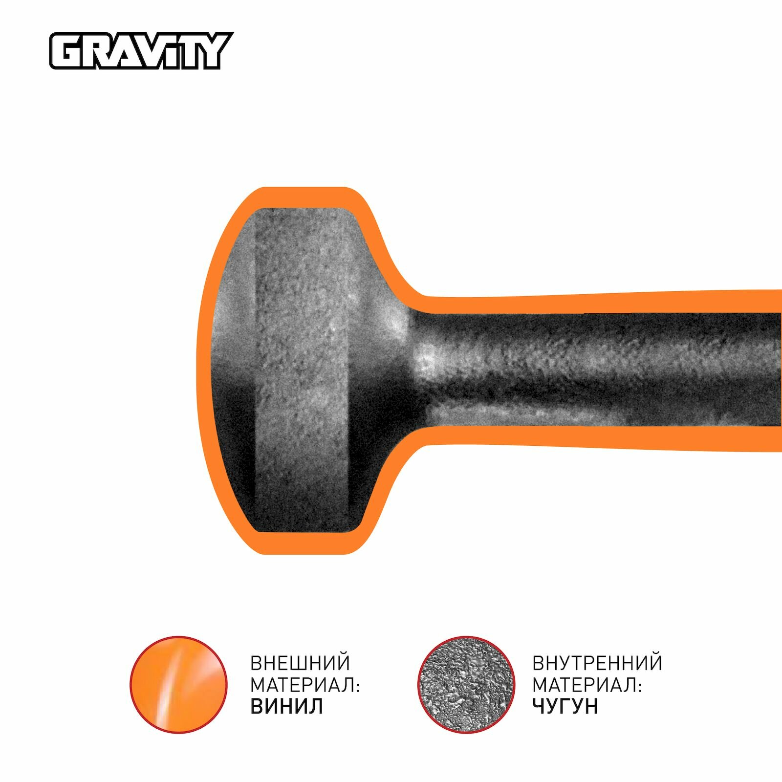 | Дополнительная информация | Однолитейные гантели; Гантели с виниловым покрытием Gravity, оранжевые, 1.5 кг, пара |