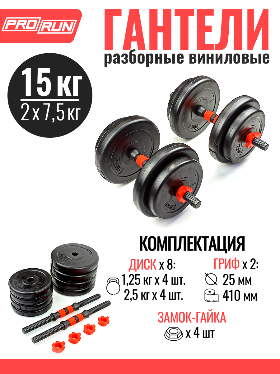 10 цен на Набор гантелей виниловых ProRun 7,5 кг х 2 шт, 100-5002