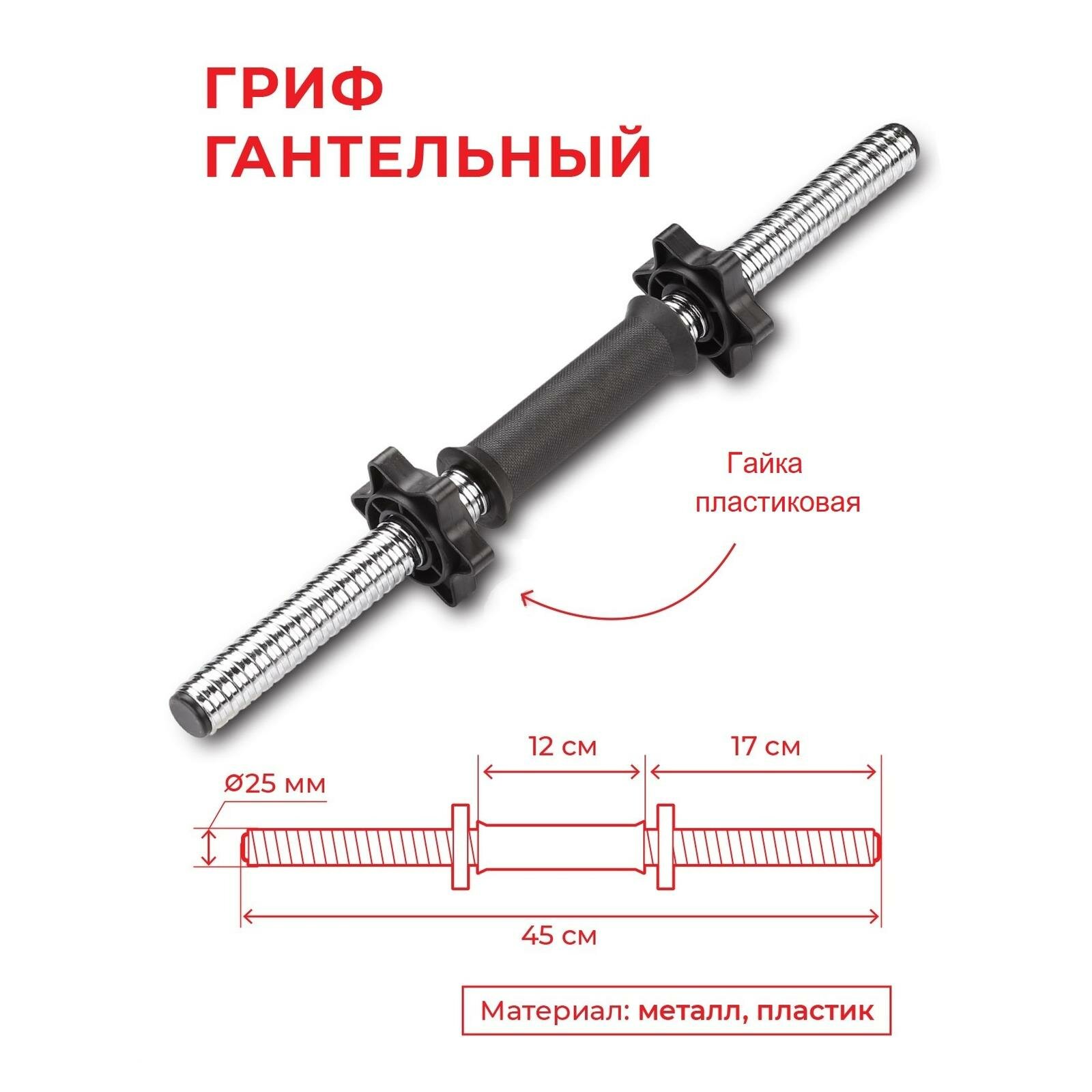 Гриф гантельный (пластиковая гайка) 25 мм INDIGO IN127 Черный 450 мм информация: