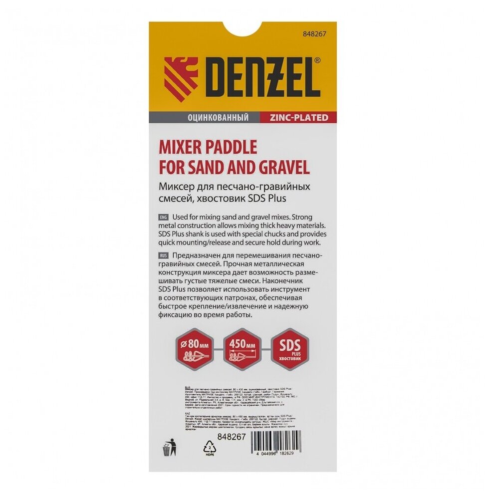 Миксер для песчано-гравийных смесей Denzel 80 х 450 мм, оцинкованный, хвостовик SDS Plus 848267 информация:
