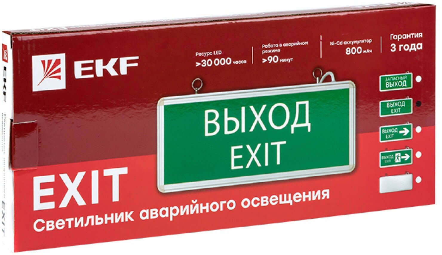 Отзывы на Светильник аварийно-эвакуационного освещения EXIT-102 односторонний LED EKF Basic