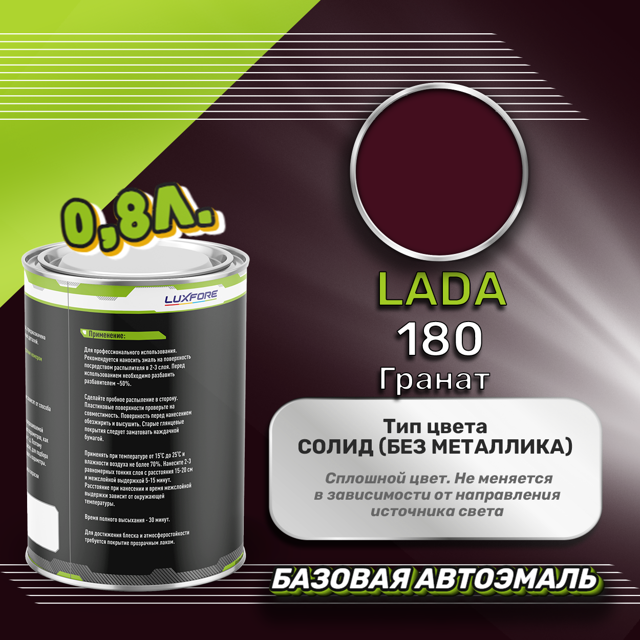 Luxfore краска базовая эмаль LADA 180 Гранат 800 мл информация: