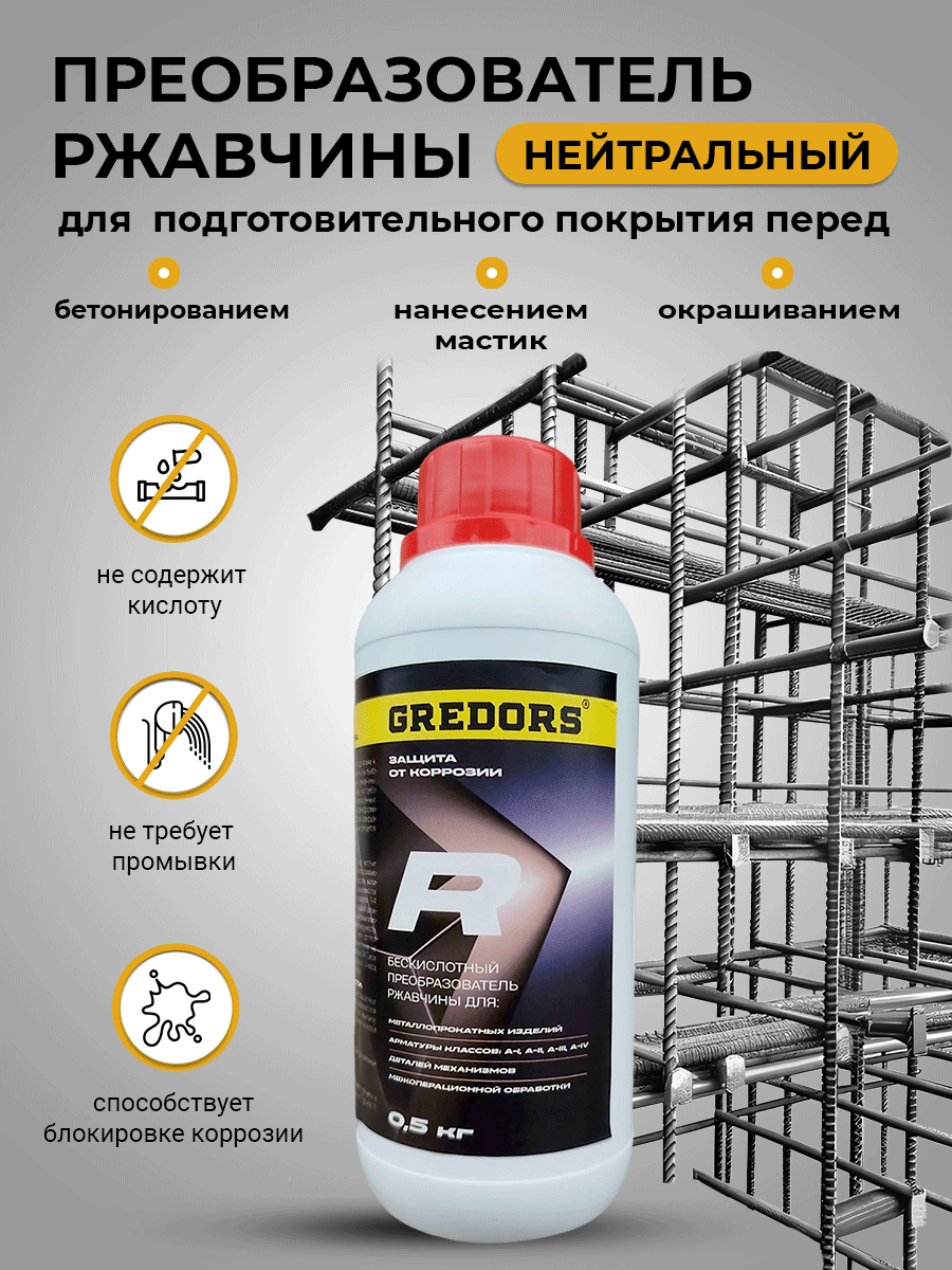 Преобразователь ржавчины нейтральный для защиты металла, GREDORS R 0.5 кг / Бескислотная защита от ржавчины информация: