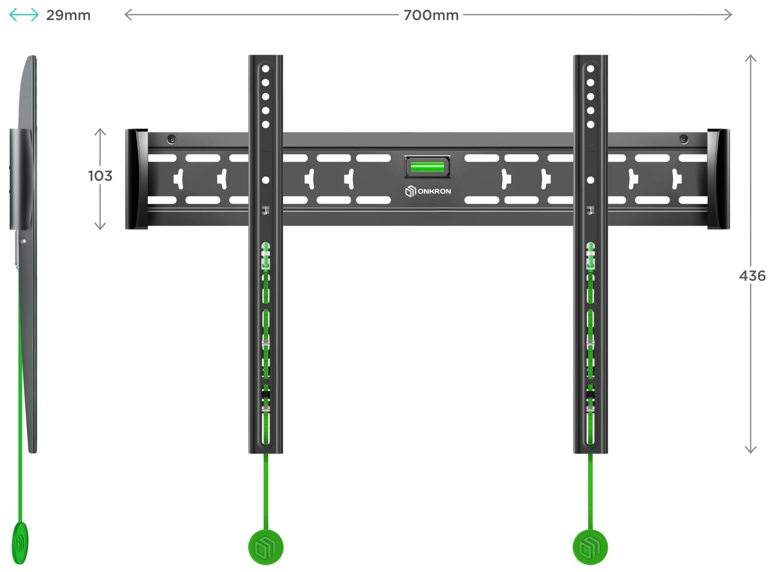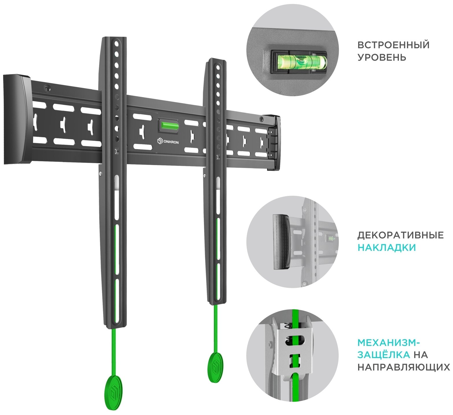 Кронштейн ONKRON/ 40-65 макс 400*600 наклон 0? от стены: 29мм макс вес 68,2кг, встр уровень 2 482 ₽