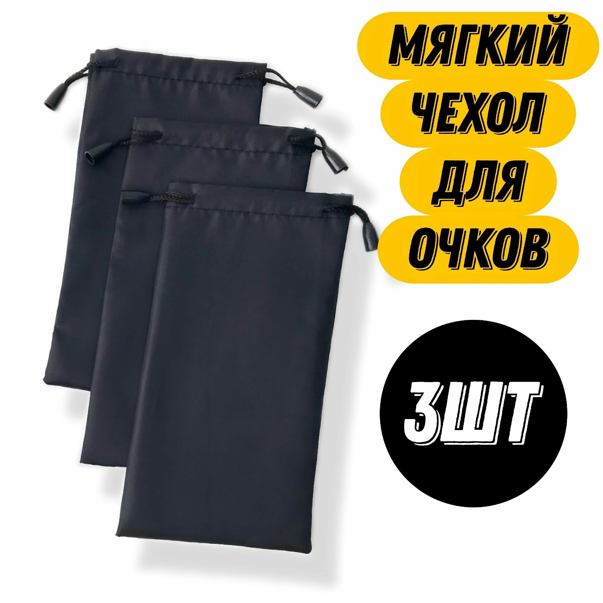 Комплект чехлов футляров для очков 3шт. Тканевый чехол для солнцезащитных очков женский мужской, очечник, очешник черный мягкий. информация:
