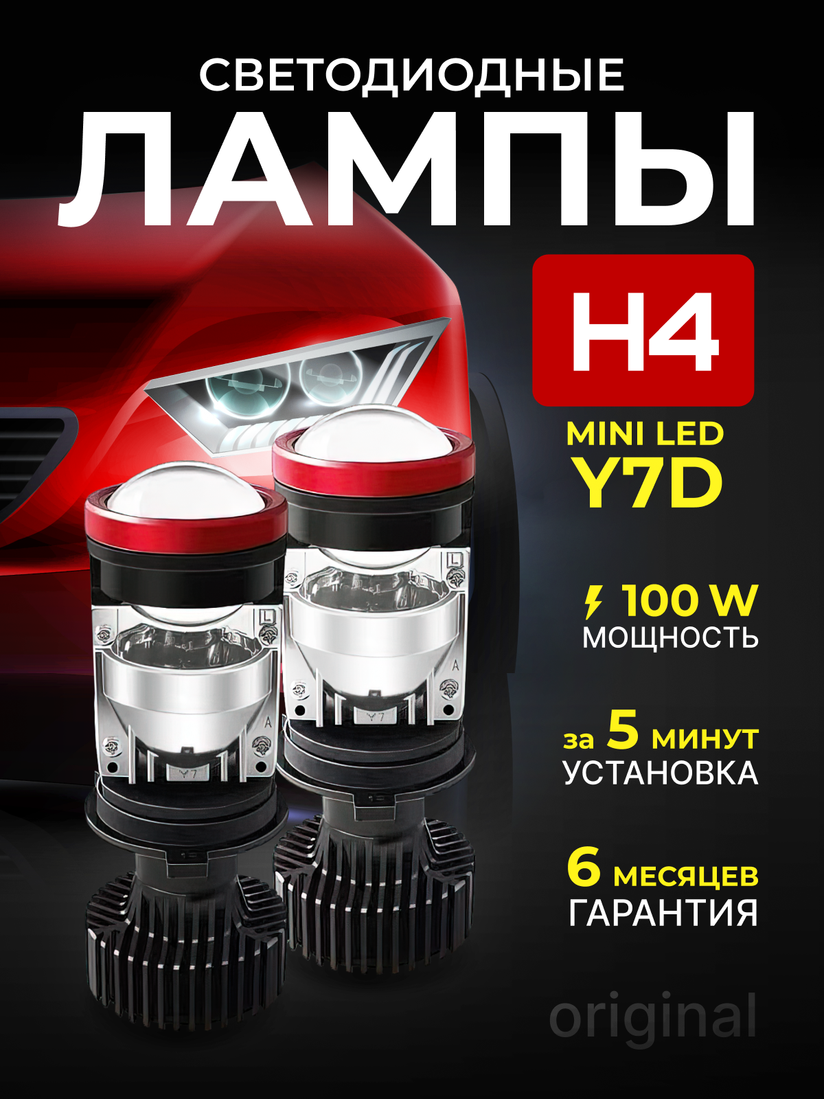 Лампочки автомобильные h4 mini led линзы Y7D информация:
