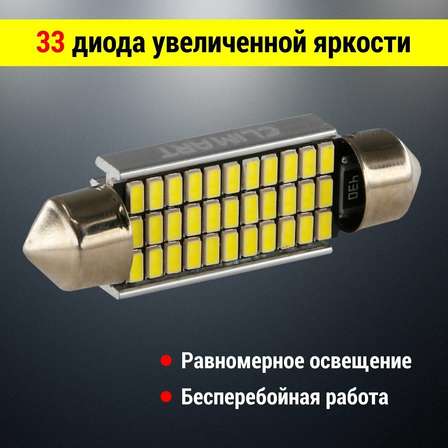 10 цен на Светодиодная Led лампа автомобильная Clim Art T11 33LED 12V (C5W/41mm)/комплект 2 шт.