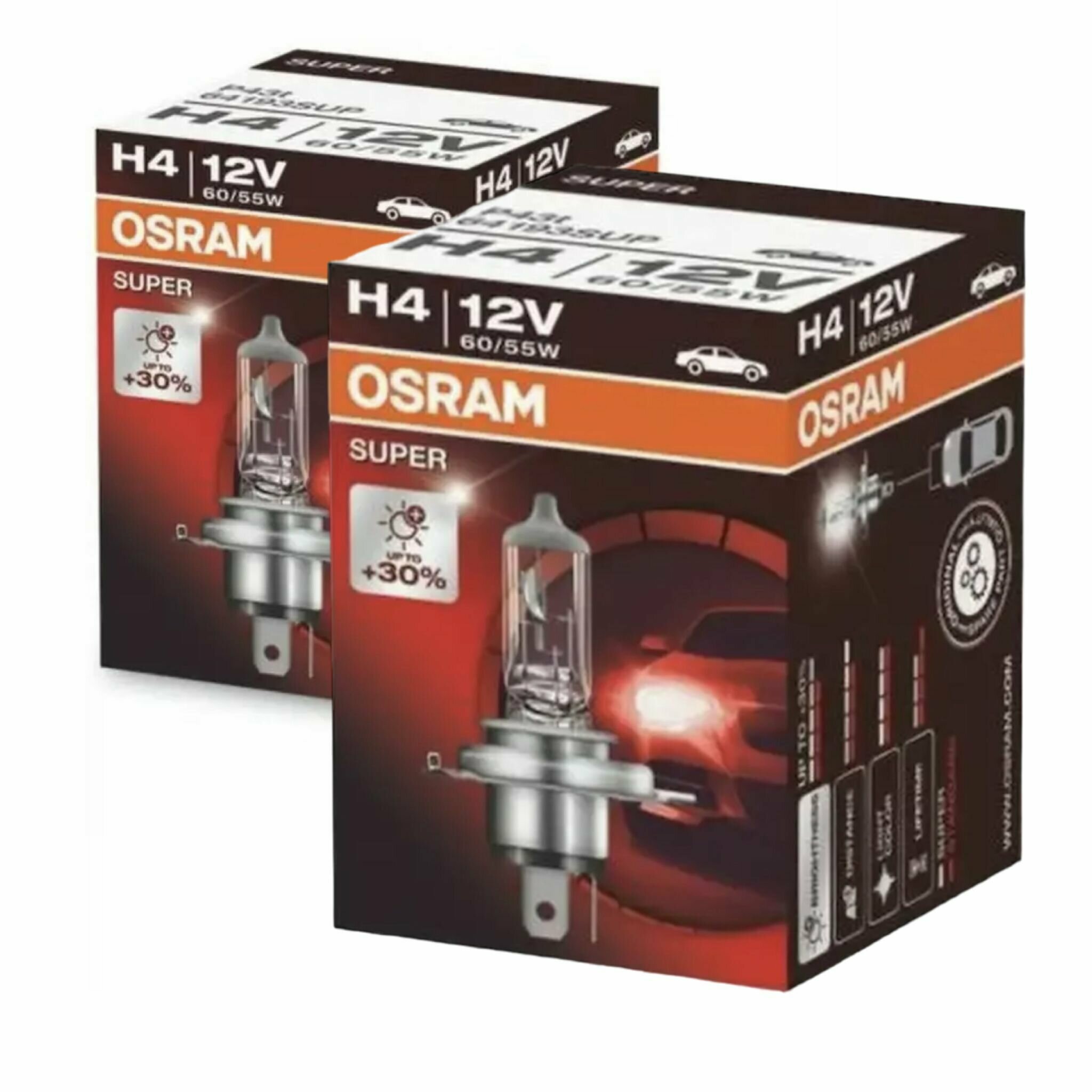 10 цен на Автомобильная галогенная лампа Osram H4 +30 к мощности, 55W, галогенка тип патрона P43t, лампа Осрам цоколь Н4, на ближний, на дальний свет, 2 шт