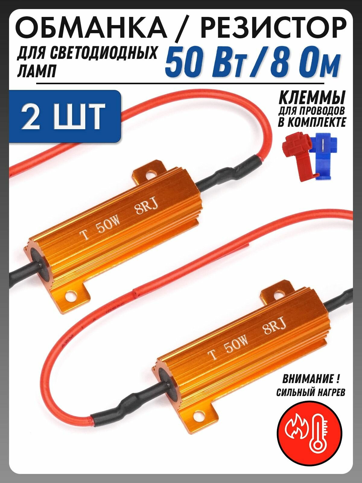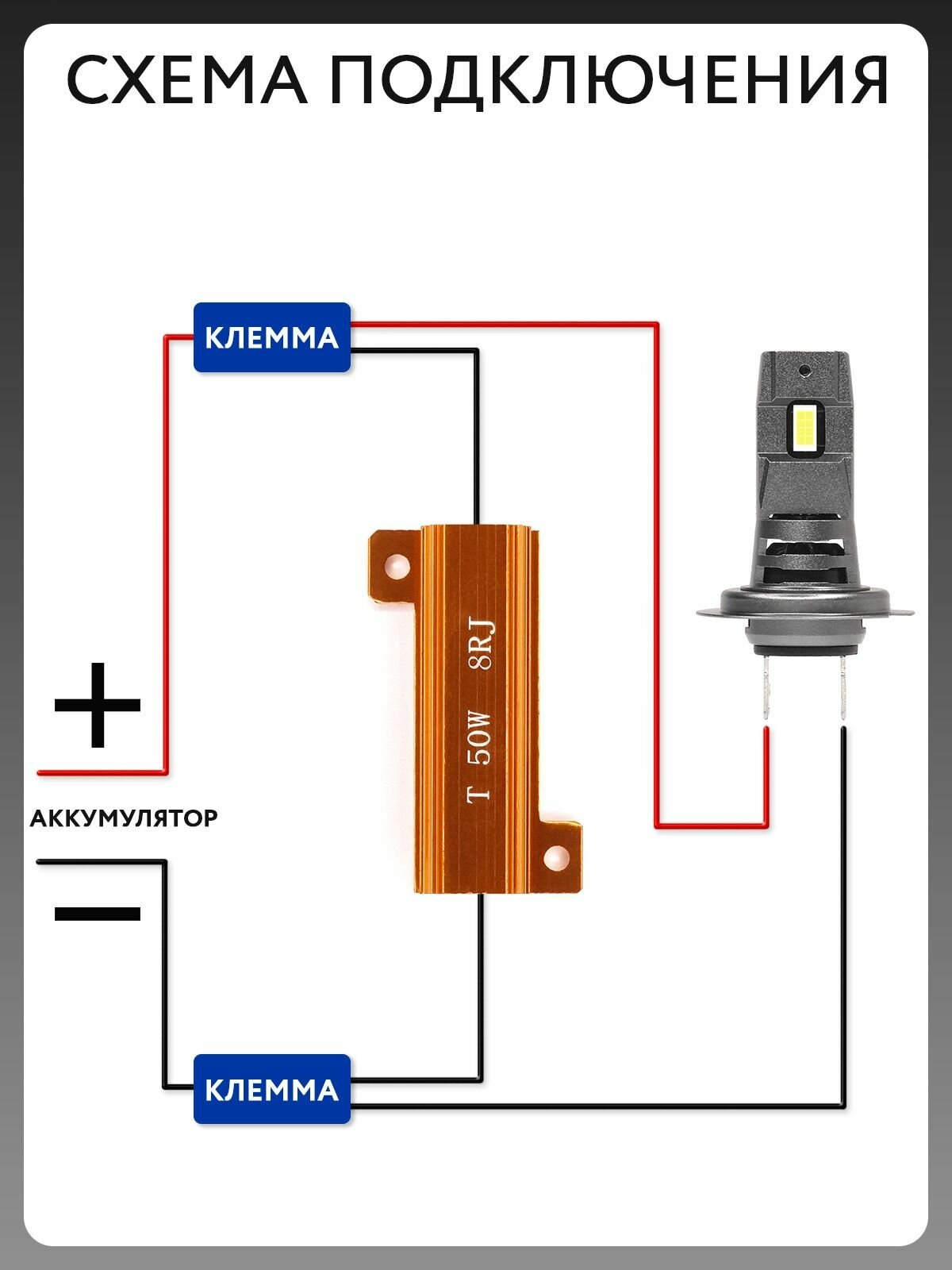 Обманка Canbus для ламп 50 Вт 8 Ом 2шт Универсальный нагрузочный резистор светодиодных для поворотников, стопов, габаритов, противотуманок информация: