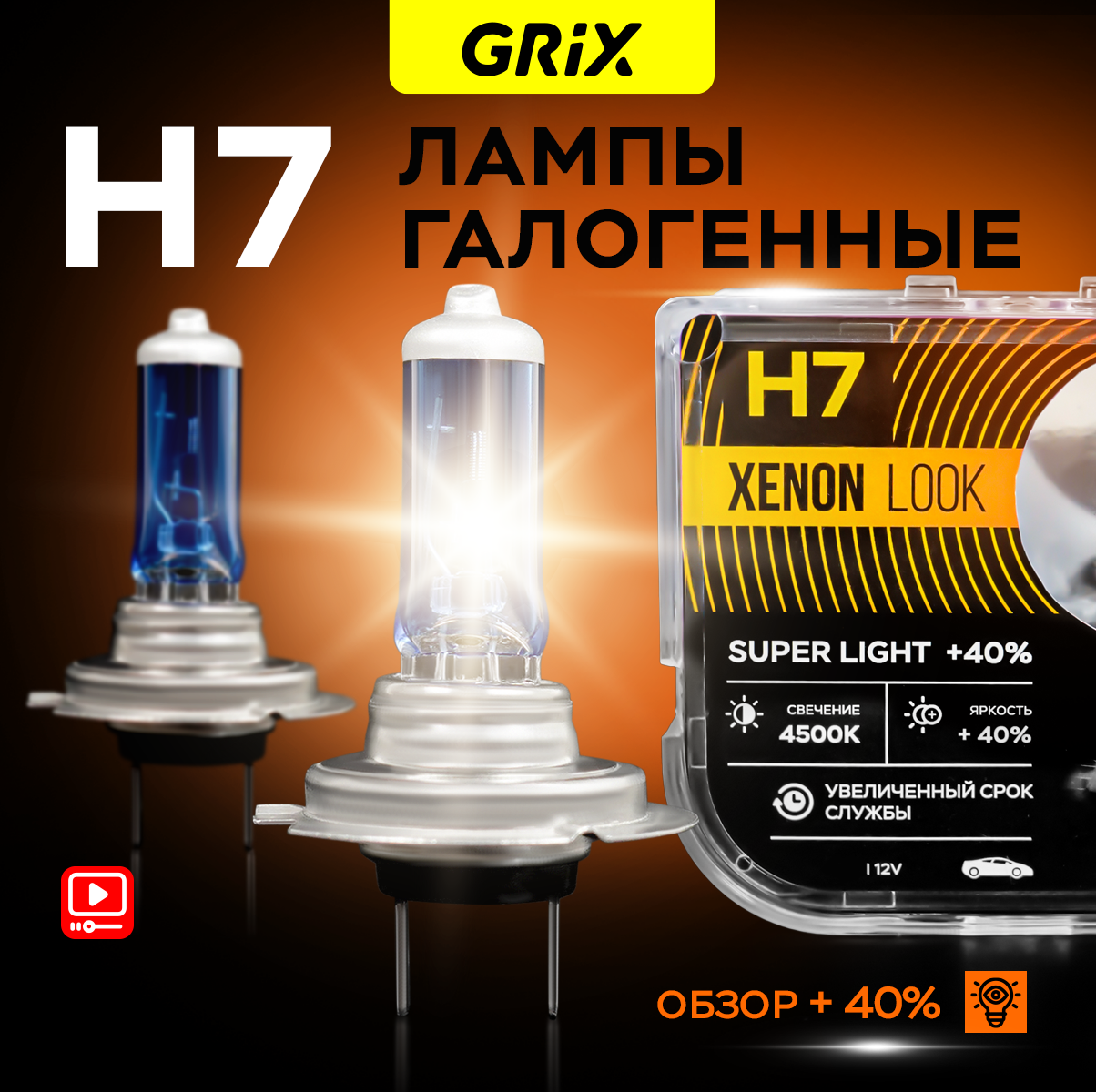 Grix H7 Лампы для автомобиля галогенные 2 шт. Xenon Look H7 4500K 100W 12V Для ближнего и дальнего света информация: