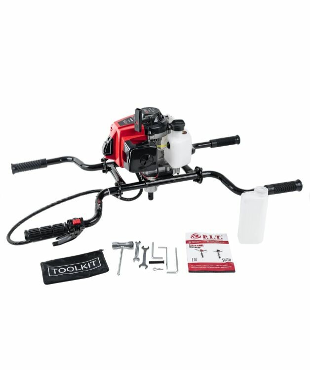 Мотобур P.I.T. P51211, четырех-ручный, 2-х тактный, 2,2 кВт, объем двигателя 63 см3, 8000 об/мин, топливный бак 1,2 л, 7,5 кг