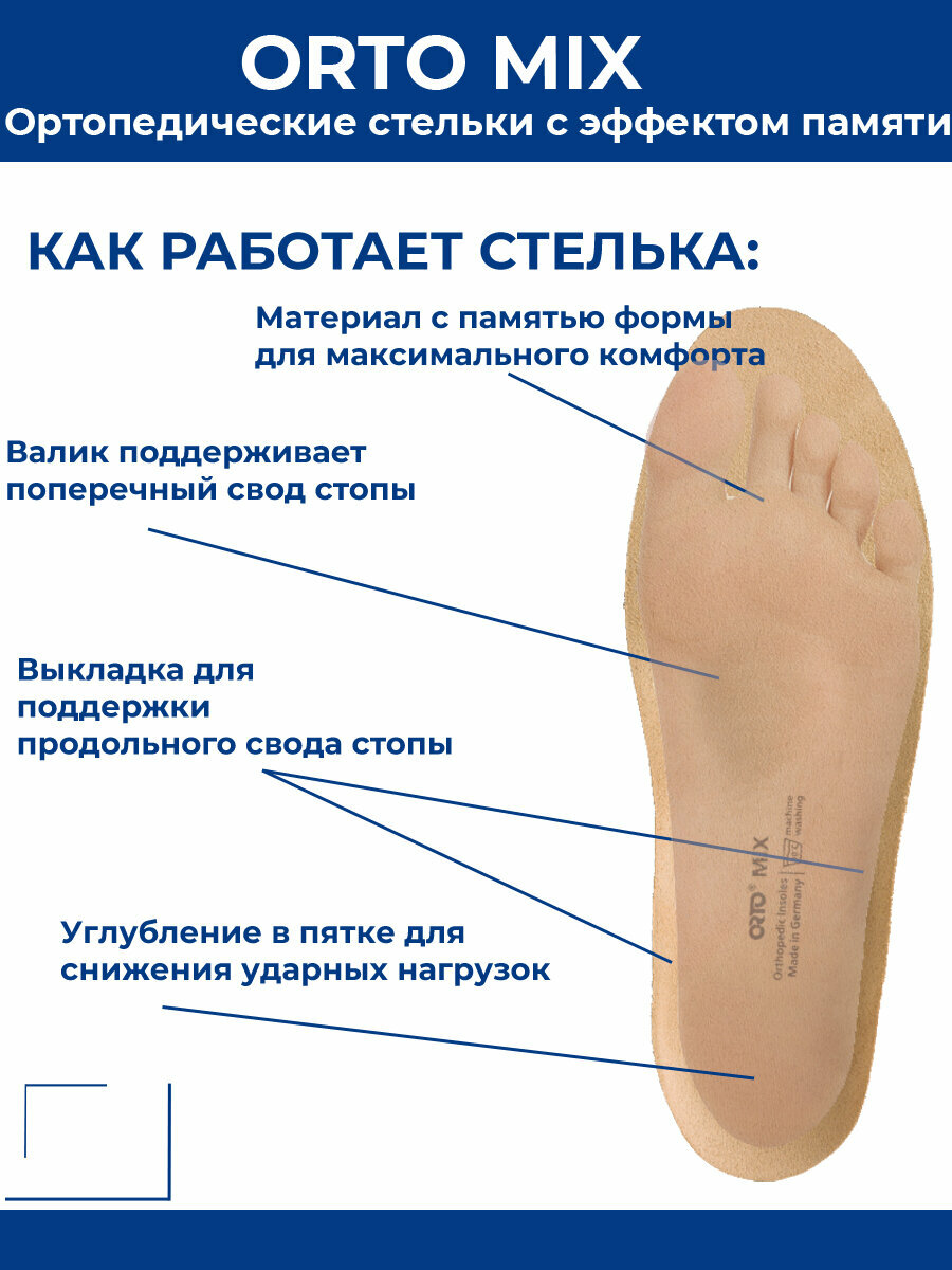 Ортопедические каркасные стельки Orto Mix с эффектом памяти мужские, женские от плоскостопия информация: