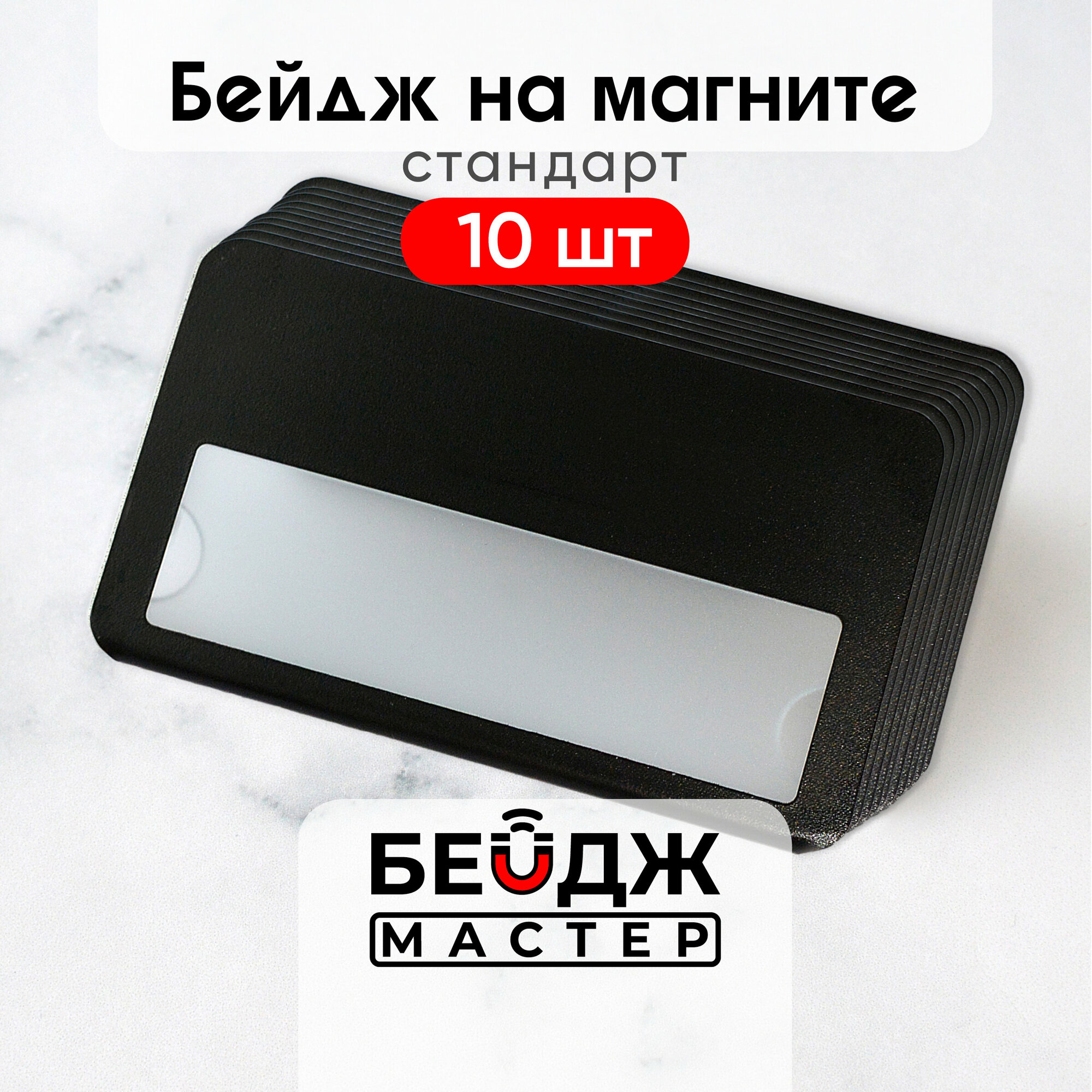 10 цен на Бейдж на магните БейджМастер горизонтальный с окном медицинский, для сотрудника, школьника , размер 70x40 мм, цвет черный антибликовый, набор 10 шт