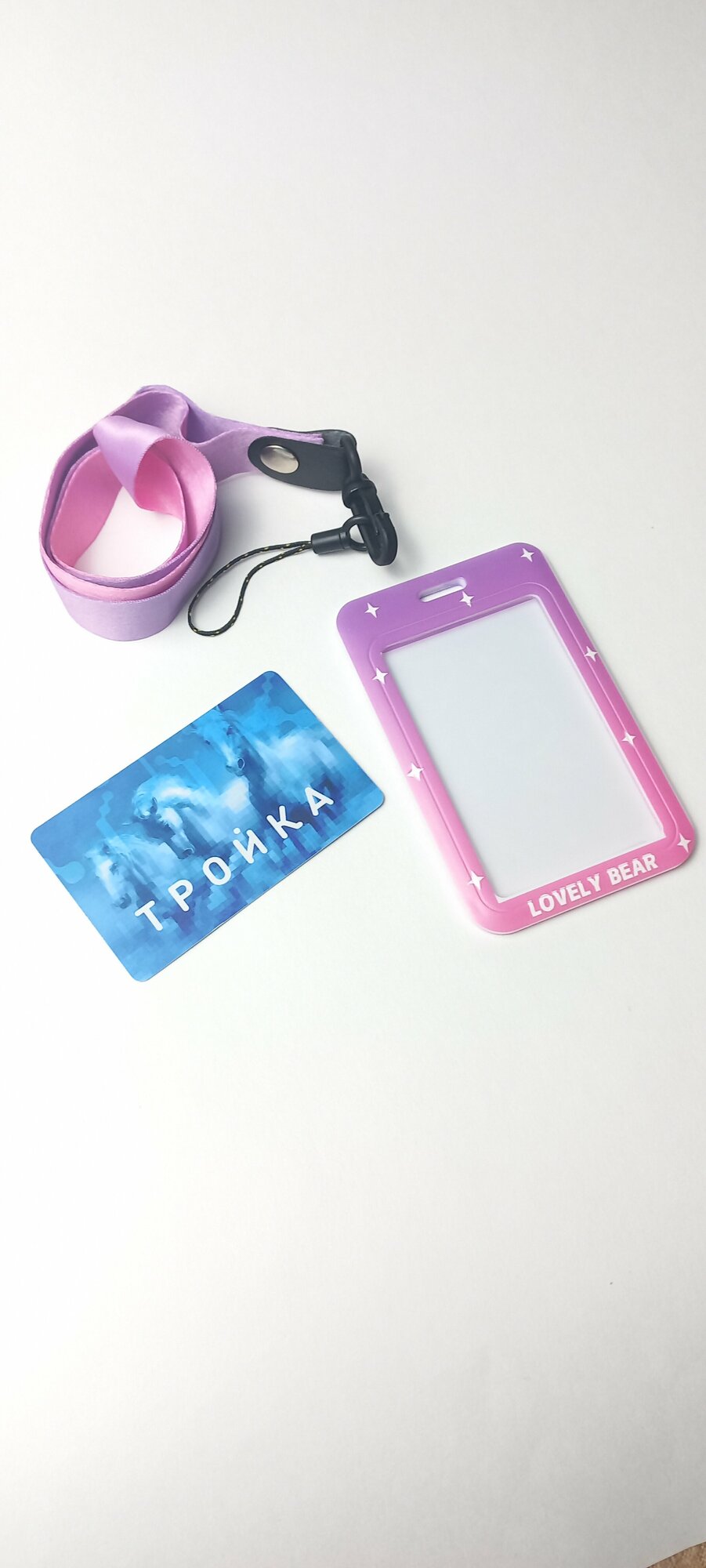 Отзывы на Чехол вертикальный для бейджа, карты, пропуска с лентой (радужный/сиреневый)
