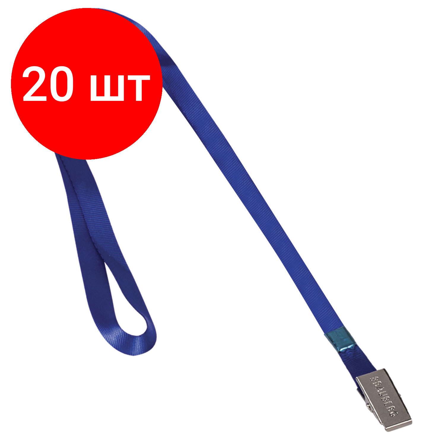 10 цен на Комплект 20 шт, Лента для бейджей, 45 см, металлический клип, синяя, BRAUBERG, 235733