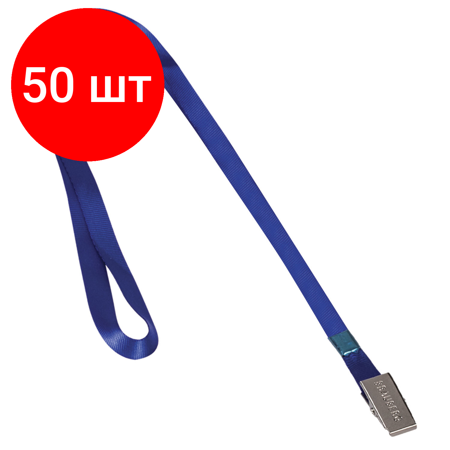 10 цен на Комплект 50 шт, Лента для бейджей, 45 см, металлический клип, синяя, BRAUBERG, 235733
