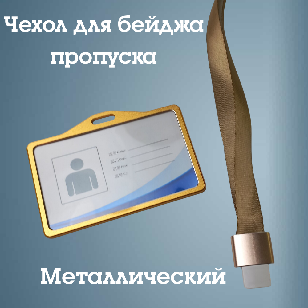10 цен на Чехол для пропуска, бейдж на ленте, бейдж для офиса горизонтальный (золотой)