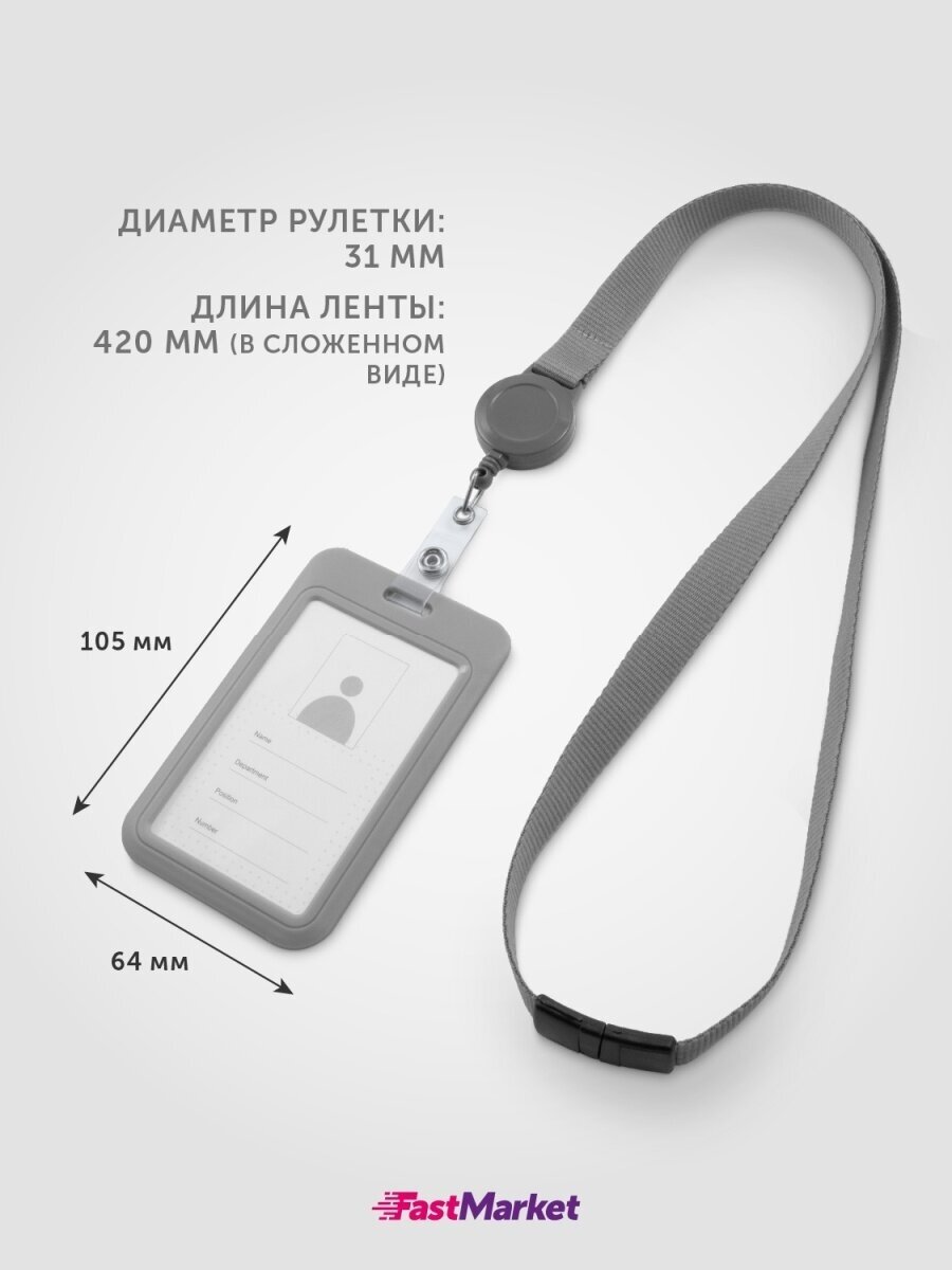 Бейджик для пропуска FastMarlet, чехол для карты школьника, бейдж на ленте, держатель с рулеткой в школу, серый информация: