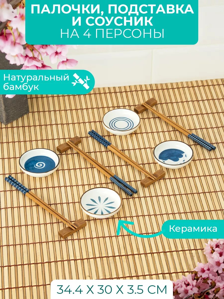 | Состав комплекта | палочки, подсоусник, подставка для палочек |