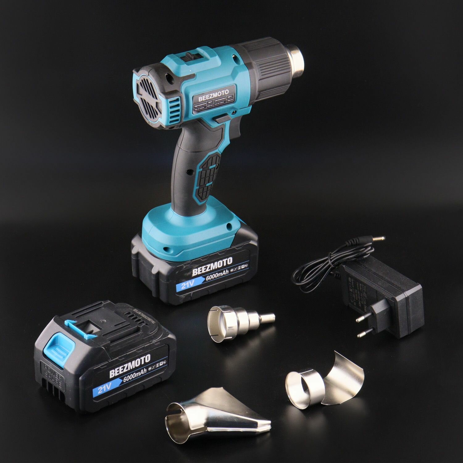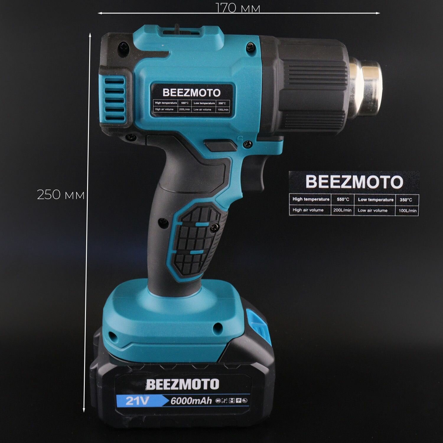 Аккумуляторный строительный фен 18V (4,0Ah, 2 акб, кейс, t до 600 , +3 насадки) "BEEZMOTO" mod.2 информация: