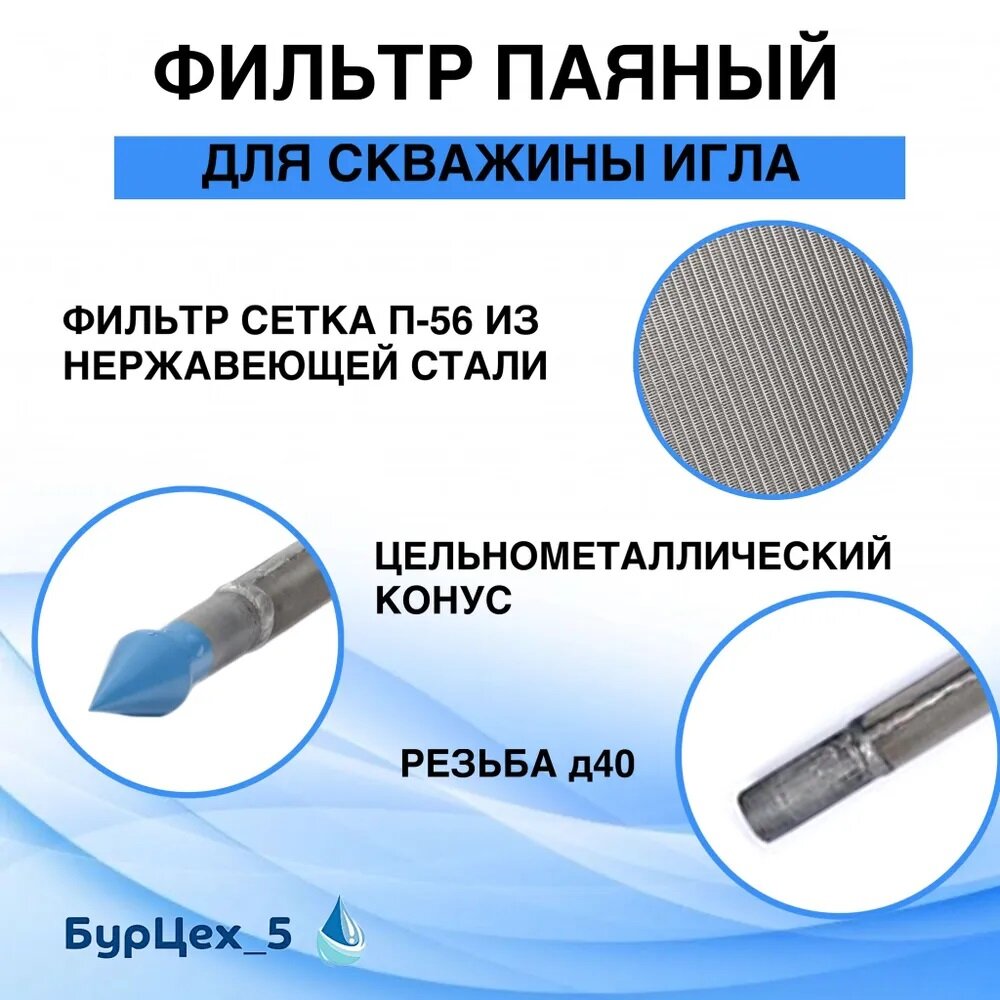 10 цен на Фильтр Игла 40 мм 1 1/2 (полтора дюйма) для абиссинской скважины (оцинковка). Паянный.
