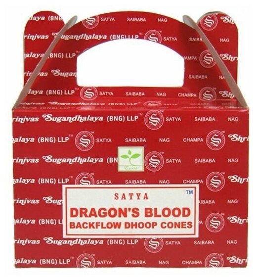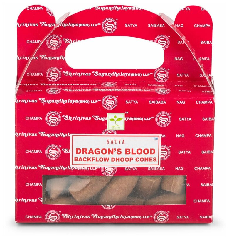 DRAGON'S BLOOD Backflow Dhoop Cones, Satya (кровь дракона благовония пуля стелющийся дым, Сатья), уп. 24 конуса. информация: