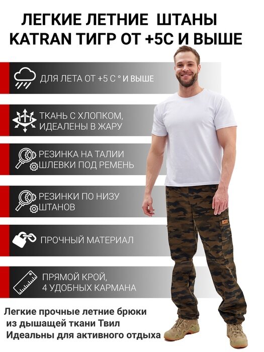 Брюки летние камуфляжные тактические KATRAN тигр (Твил, коричневый КМФ), Размер: 48-50 Рост: 182-188 информация: