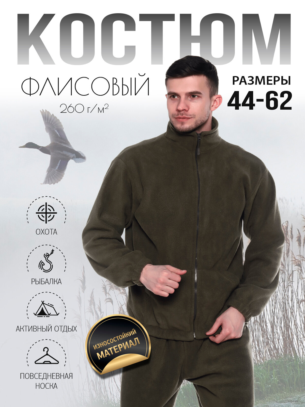 Костюм мужской флисовый для охоты и рыбалки туризма цвет хаки, размер 56-58 информация: