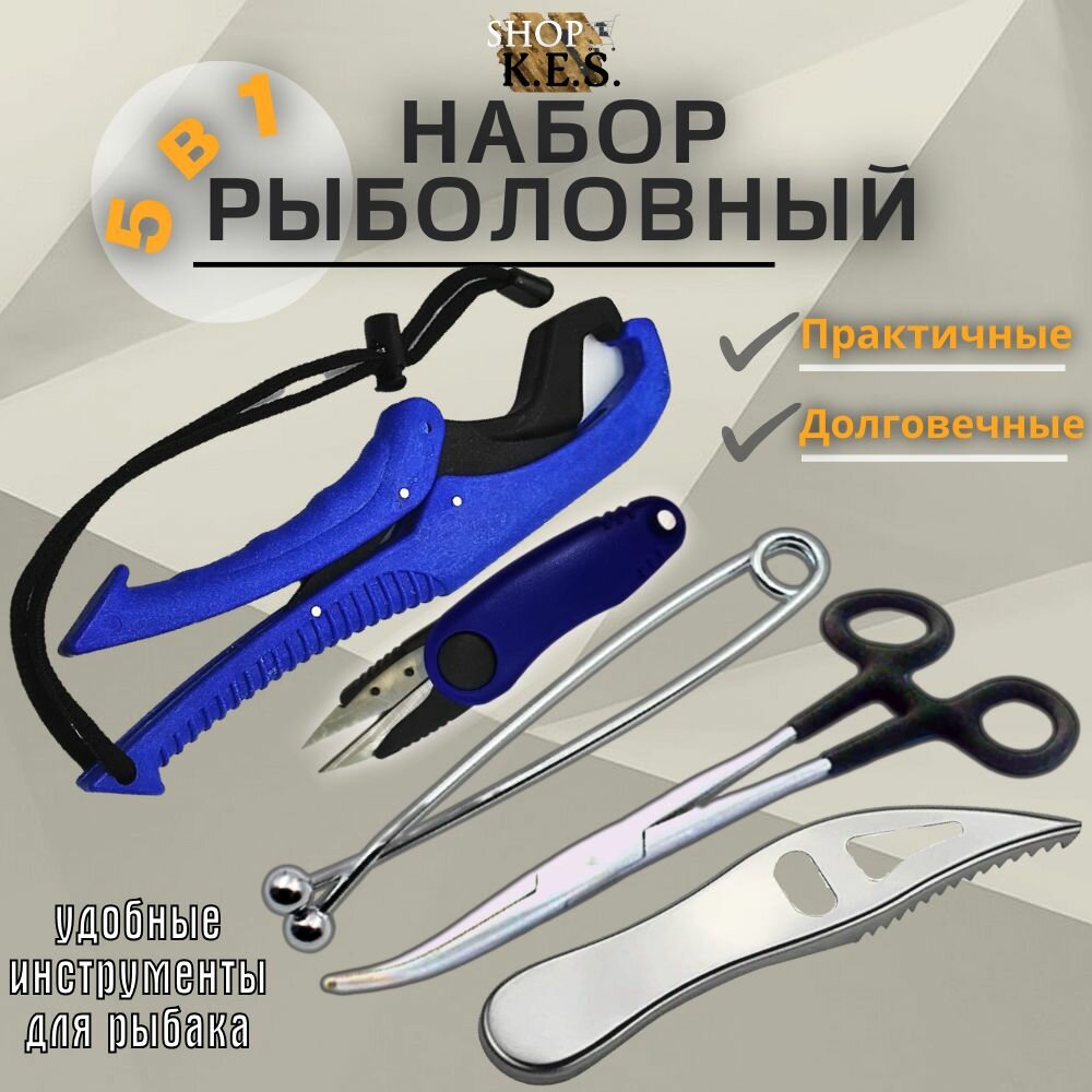 Липгрип , ножницы-перекусы, экстрактор щипцы, зевник, нож для удаления чешуи / Набор рыболовный 5в1 информация: