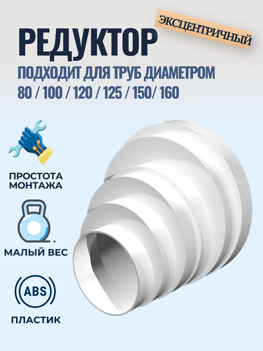 Отзывы на Переходник универсальный 80 / 100 / 120 / 125 / 150 мм, редуктор многоступенчатый, 1 шт, белый, воздуховод