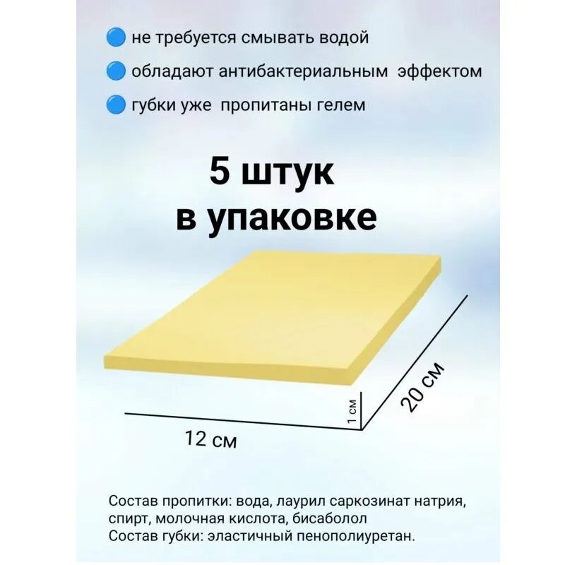 Губка поролоновая пенообразующая №5 (пропитанная гелем, сухая), размер 12х20х0.5 информация: